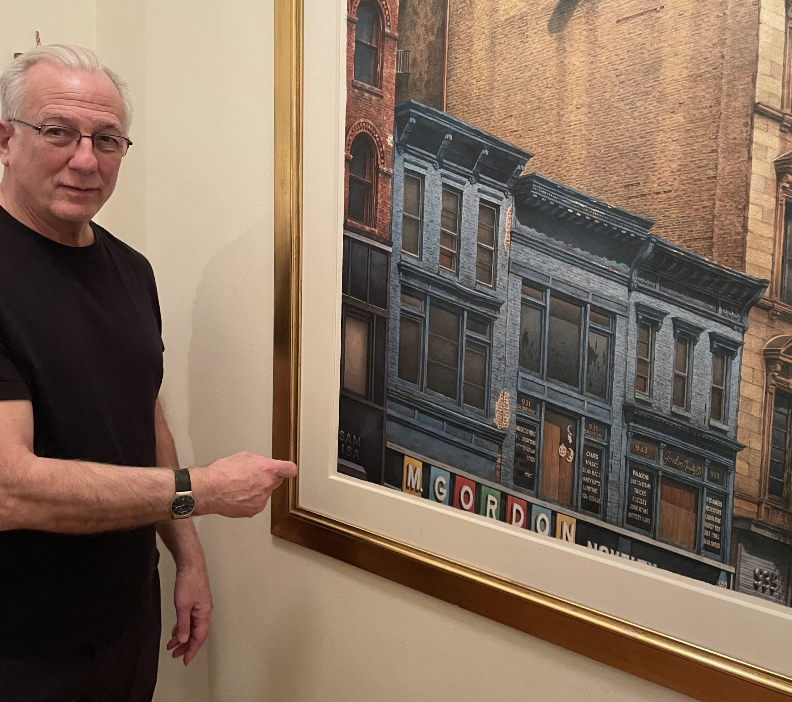 He knows the stories behind many city structures, but has always been a local, growing up on 78th and Riverside, attending our public schools. (“I’m Internationally famous on the Upper West Side,’ he jokes.) He survived what he calls a “broken” childhood (A mother who took her own life and a father largely in a wheelchair) and eventually studied at the Pratt Institute. He is a talkative, lively, engaging man. Just spending time with him, and perusing his walls, is a history lesson about the neighborhood, the city, and how to hone new or rusty skills.