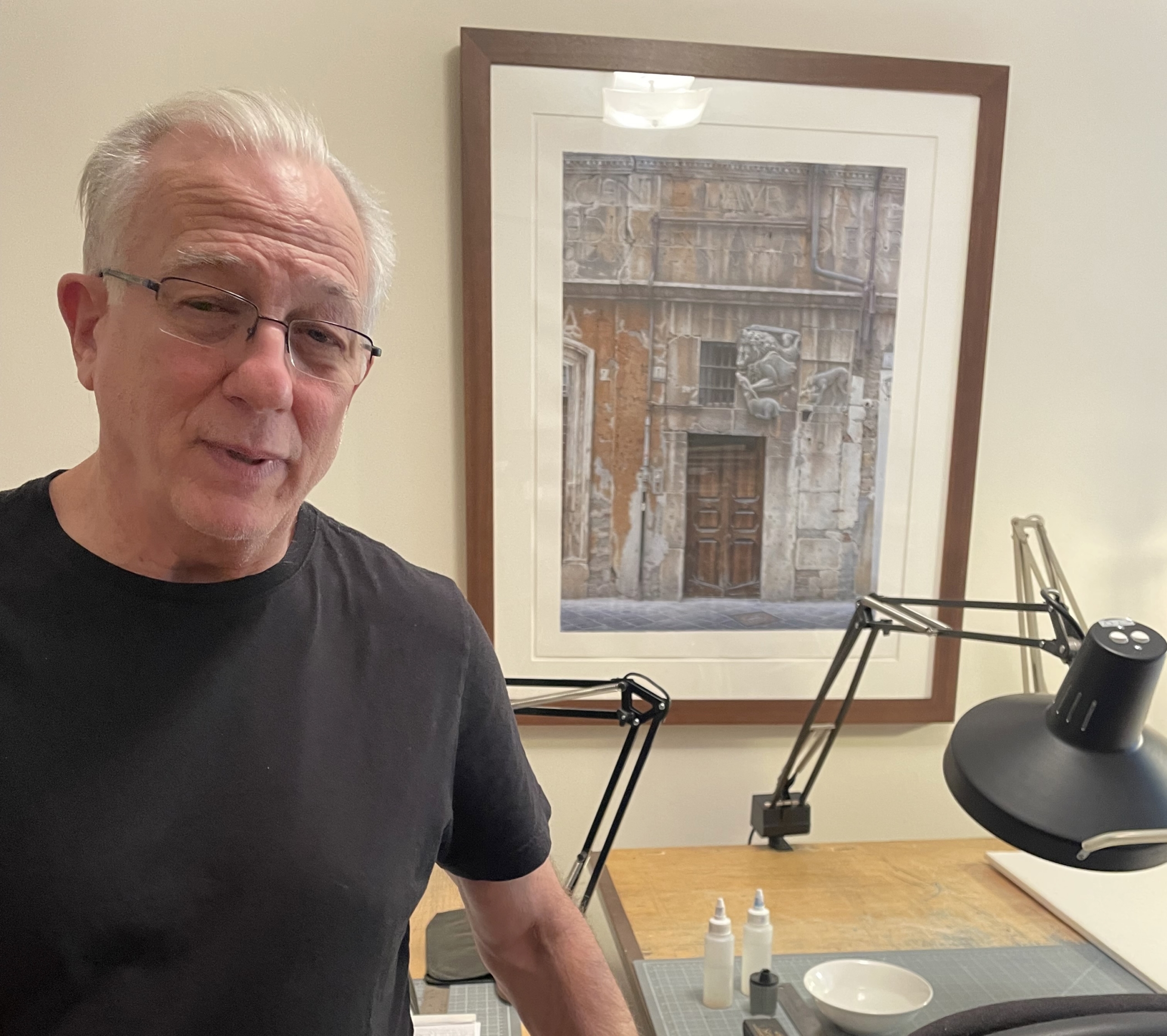 Skills that folks like Mike Rubin, who had a four-decade career in television news, are developing. He visits Brosen once a week for two-and-half hours. The first thing Brosen told him was that he needed better equipment and to focus on drawing. Rubin, who lives on W. 70th, says Brosen “has some pretty harsh rules, and says the most efficient way to learn is to copy. Rick says you’re doing exactly what they—the established artists—did and you’re trying to achieve their solutions.” On a recent day, Mike was, in fact, copying one of Brosen’s own works, adding, he told me, “a shadow here or a little red here for some warmth. That’s what you call locking it in, there is where the real horizon line is.” He even talks like an artist now.