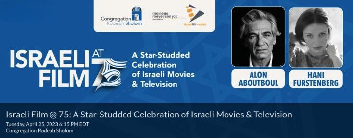 Join Congregation Rodeph Sholom and the Israel Film Center of the Marlene Meyerson JCC Manhattan to celebrate Israel’s 75th birthday with two of Israel’s most popular actors, Hani Furstenburg (Campfire, Asylum City, and The Golem) and the legendary Alon Abutbul (Beaufort, MK Ultra, London Has Fallen, and The Dark Knight Rises).