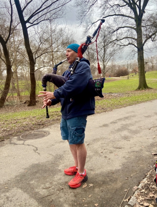The first few times I encountered Walsh, 55, standing alongside his FDNY/EMS rig playing his pipes toward the west side of the 102nd Street Transverse, I did what any self-respecting New Yorker does upon encountering such a sight: I videoed it and posted it on my Instagram story with a caption along the lines of “NYC is so great.” I found it charming. And who doesn’t love to feel something when bagpipes are playing? Queen Elizabeth II even had a bagpiper wake her up every morning.