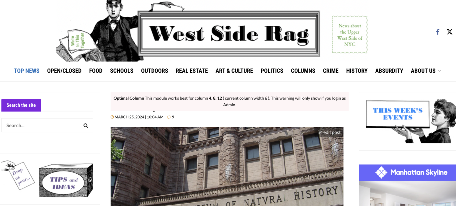 West Side Rag is 13 years old now, long past the time when we should have added an “about us” tab to our home page. There is a tab now, at the far right end of the lineup or at the bottom on your mobile device. If you haven’t checked it out, please do.