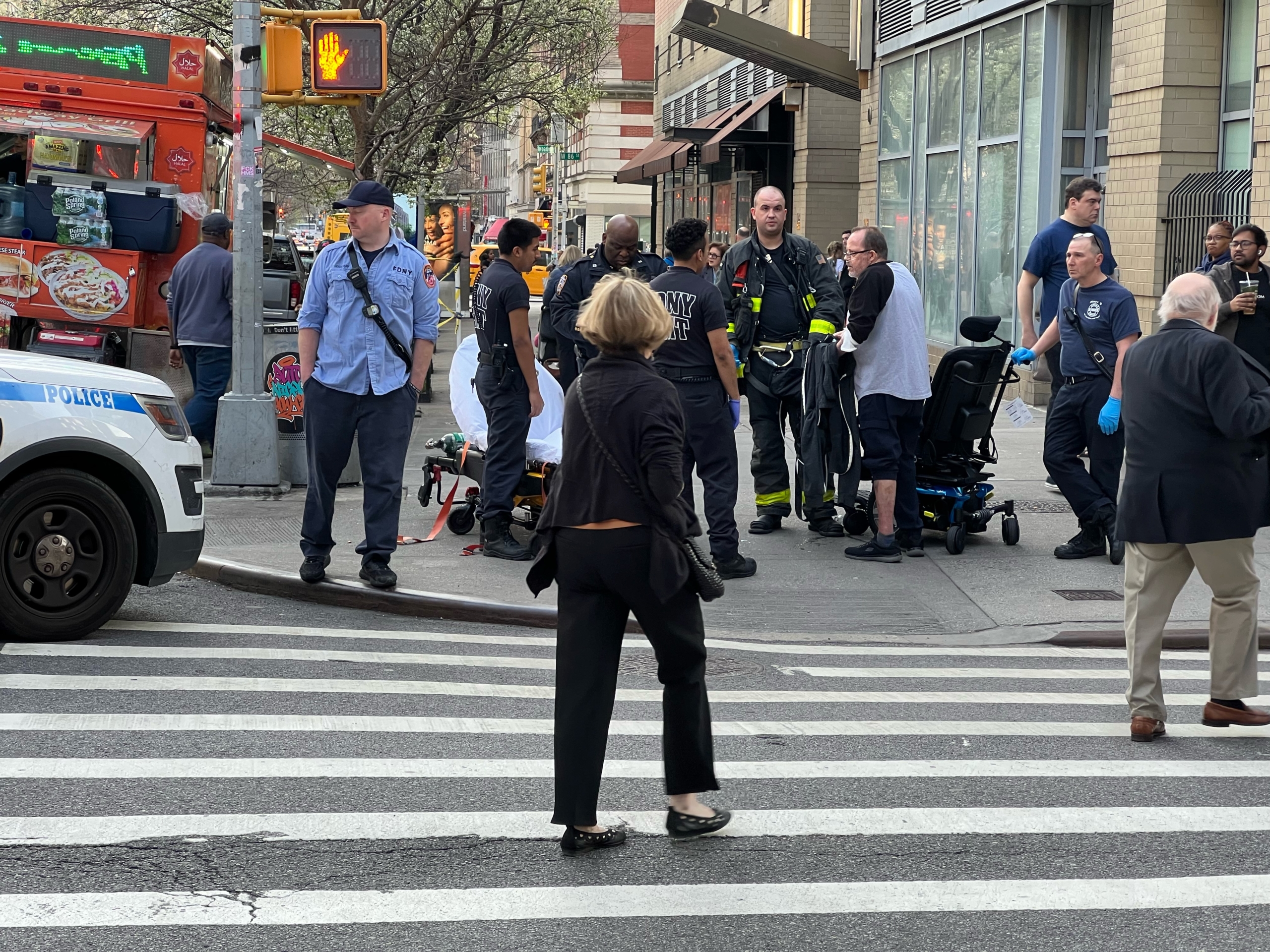 I’m going to. This was me. It was a yellow taxi 🚕🚖 who made a right hand turn onto 87th and struck me in the middle of the cross walk. Luckily he did see me and locked his brakes up or it would of been even worse. He smacked me good. I needed stitches in my arm. My leg got banged up and a large bruise. Also some cracked bruised ribs. My cart is has some frame damage and the taxi lost his bumper. FDNY was and is fabulous! They took it to my building and my door man put it in my apartment.