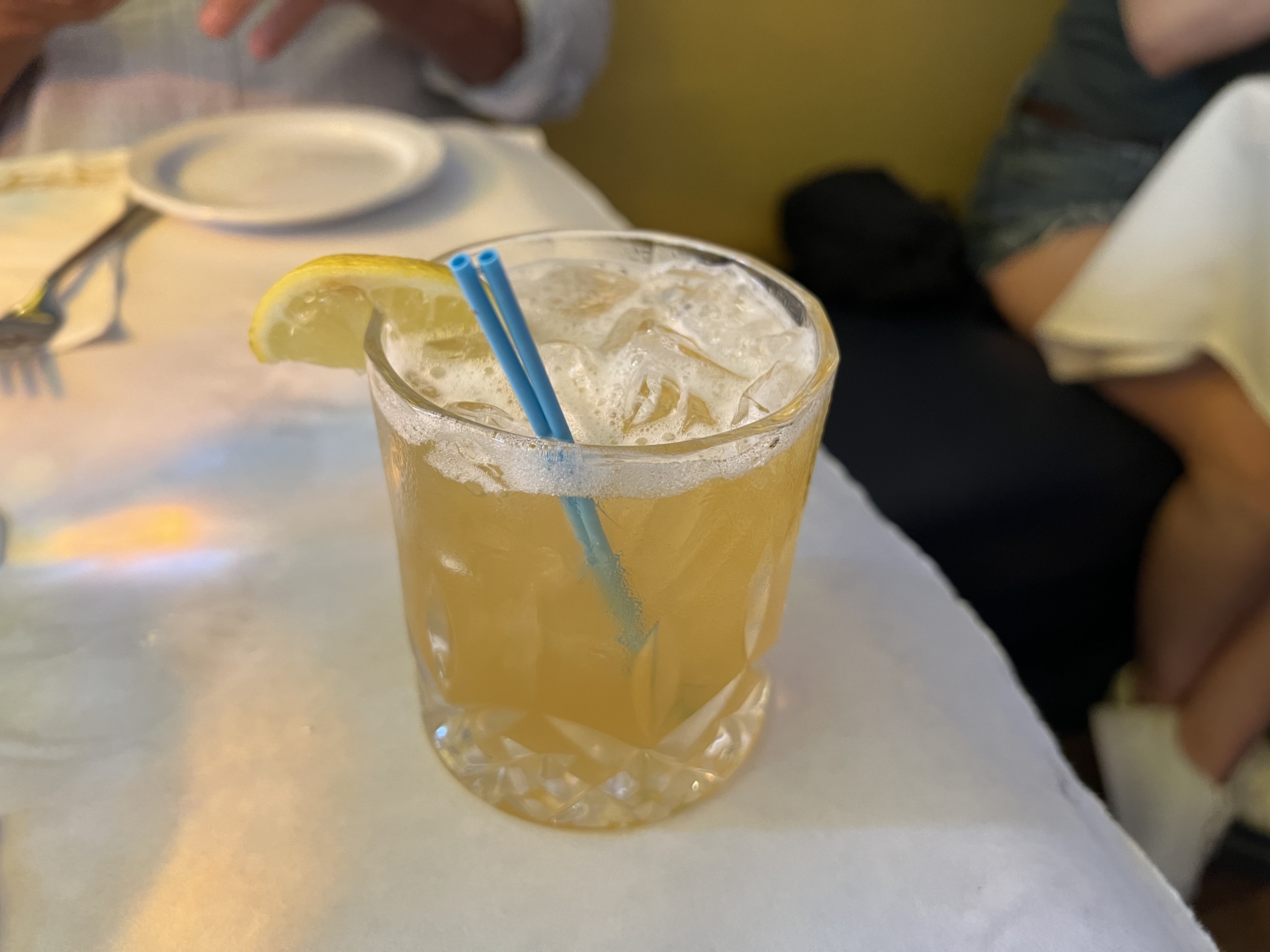I started the night with a refreshing Peach Bourbon, which was perfect to beat the ongoing heat wave. The drink is a mixture of bourbon, peach, lemon juice, and simple syrup, with the peach shining through.