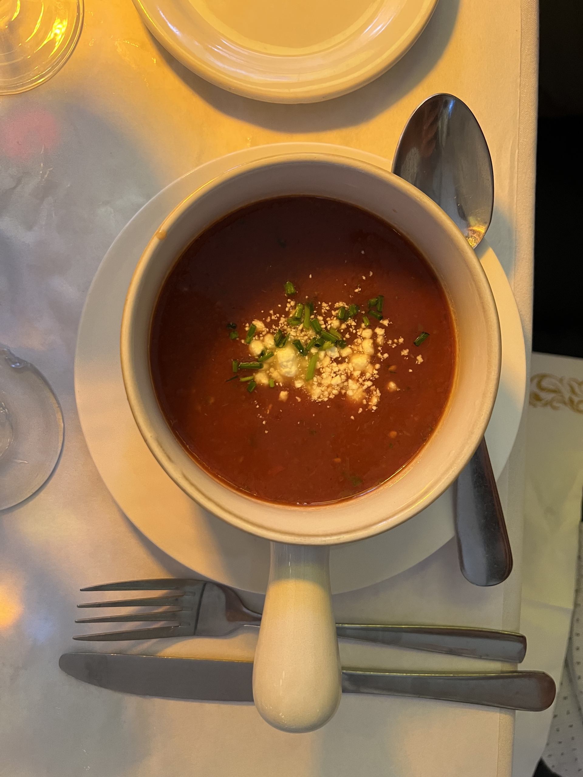 Gazpacho is not French cuisine by any measure, and French restaurants do not serve Gazpacho. The only thing French about this restaurant is the name.