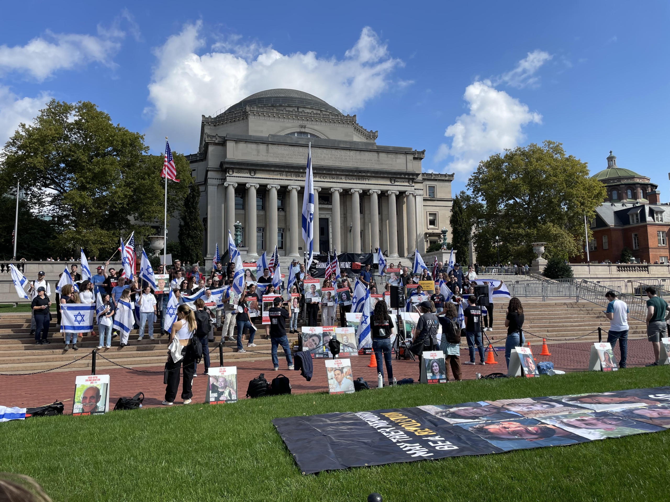 A memorial for the 250 Israelis taken hostage by Hamas last October 7 covered the South Lawn of the Columbia campus — the same space where, last spring semester, pro-Palestinian protesters had set up an encampment to press demands that the university divest of any financial holdings in Israel.