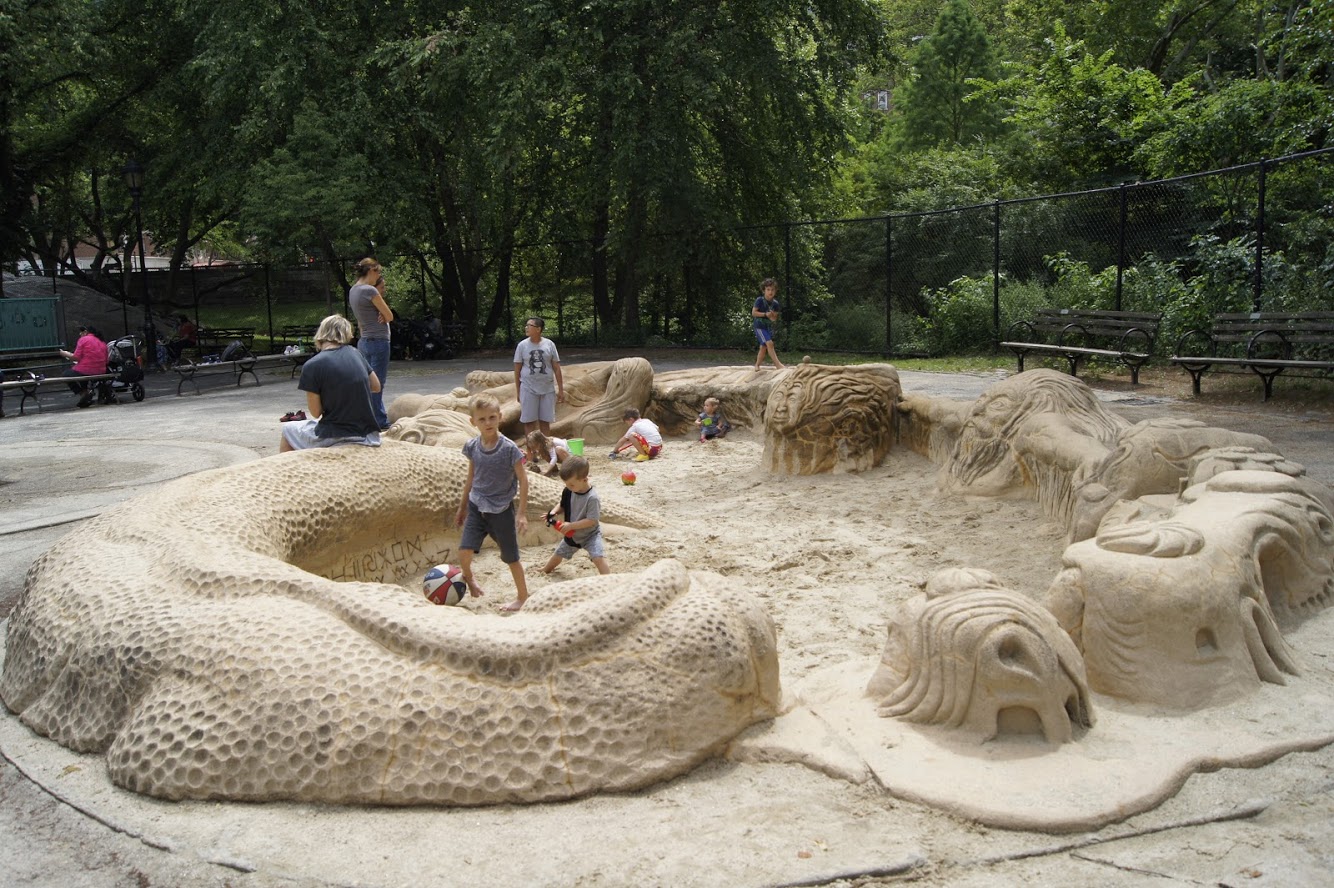 More permanent works by Lynas can be seen in several New York City parks, including the weathervane atop the Central Park Carousel and the concrete sandpit in River Run Playground at Riverside Park. Both were the result of commissions with the city in the late 1990s, though Lynas noted that the sand pit was originally a neighborhood-inspired project.