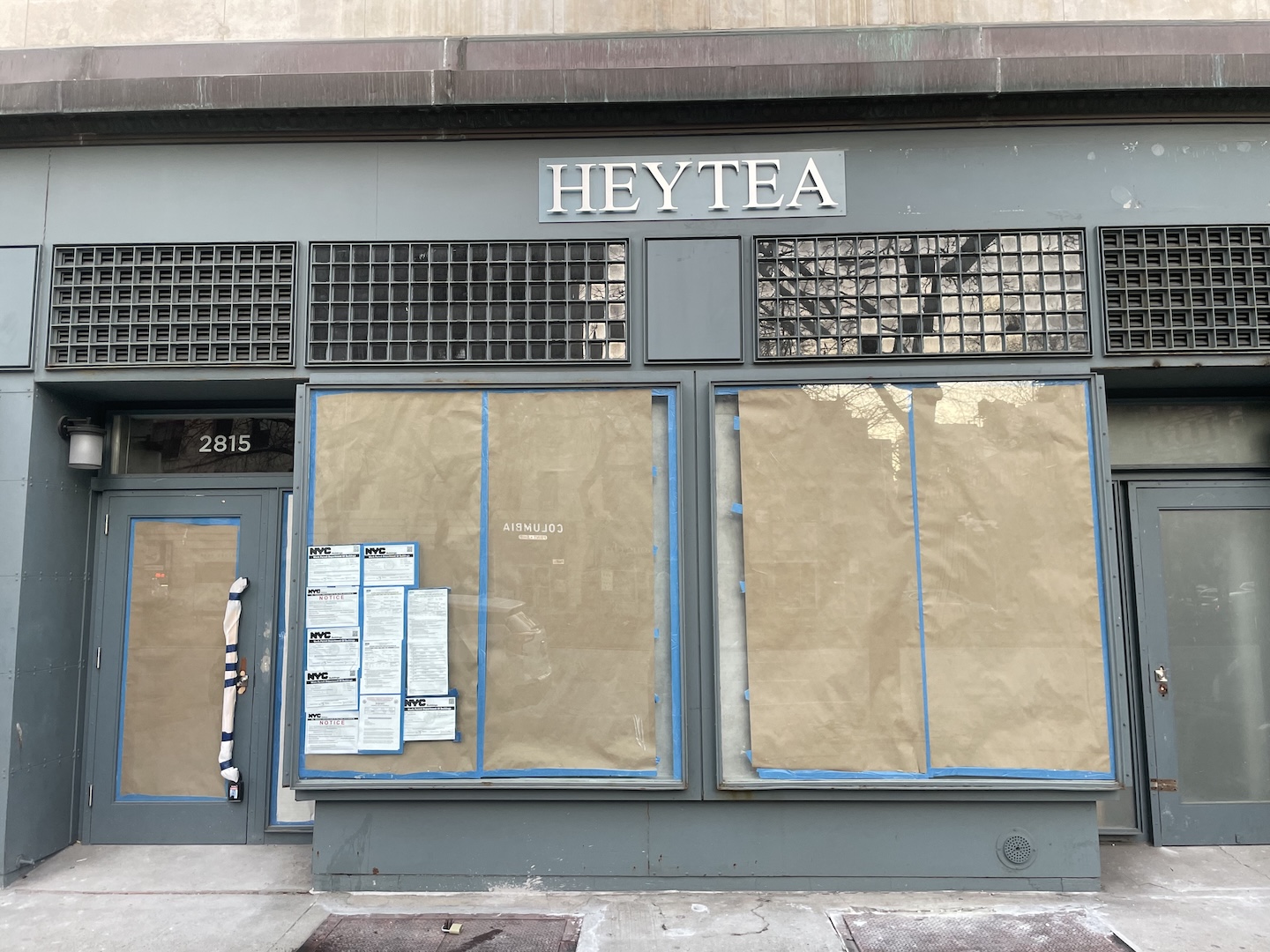 HEYTEA, a bubble tea shop, has signage up at 2815 Broadway (between West 108th and 109th streets). The menu includes matcha-flavored lattes and drinks, fruit tea, milk tea, and other Chinese teas. Founded in 2012, HEYTEA operates on a franchise model and has several locations in NYC and 4,000 stores globally. The space used to be a sales gallery for The Rockwell, a luxury condo building on West 103rd Street. (Thanks to Tracy and Paul for the tips.)