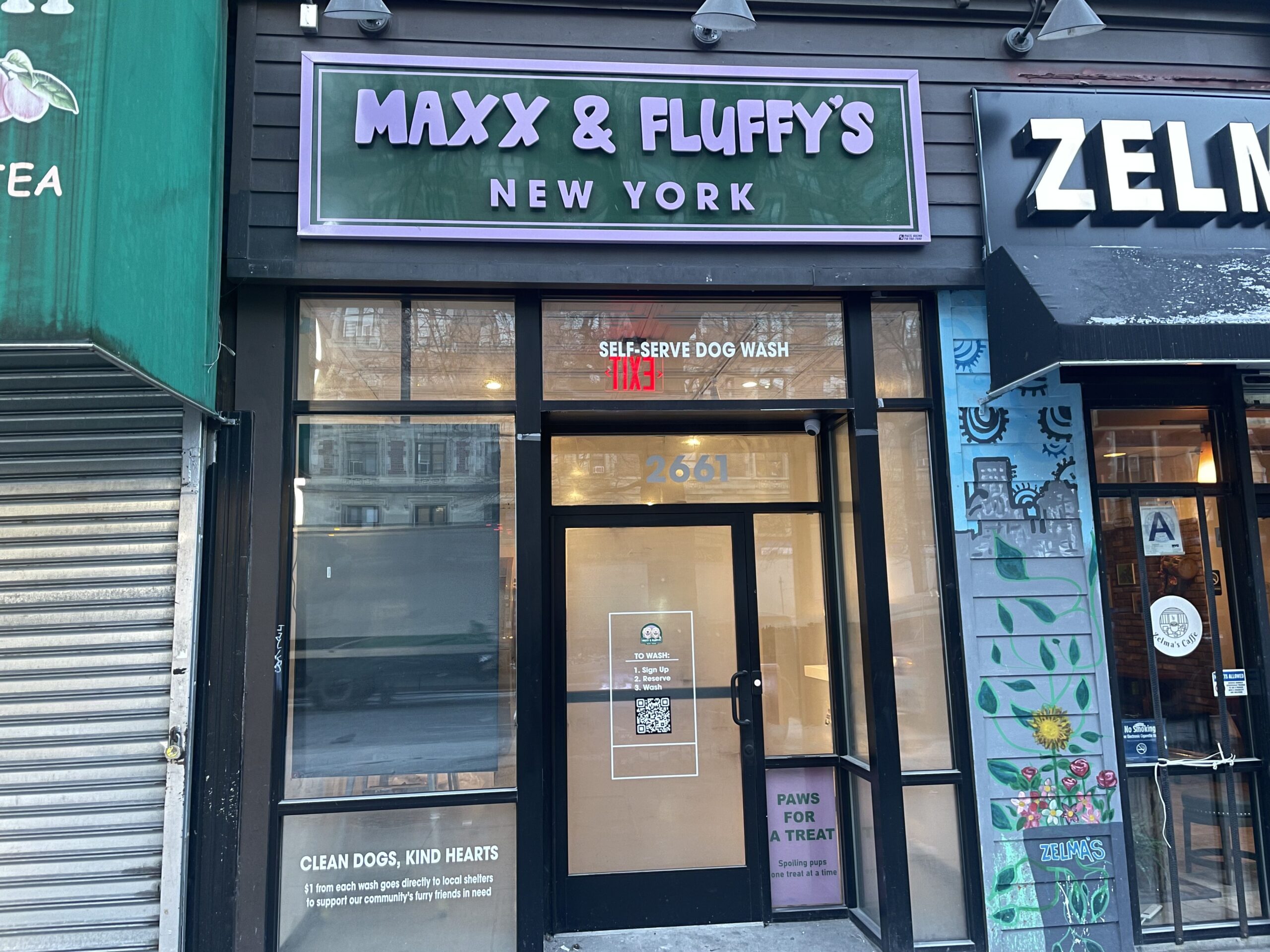 Maxx & Fluffy’s, a self-service dog washing salon, has opened at 2661 Broadway (between West 101st and 102nd Streets). The space is open 24/7. When customers book an appointment online, they are given access to unlock the store and from there they can use the professional dog-washing machines. Each washing session lasts for 60 minutes. The salon provides shampoo, conditioner, and towels. There are membership and non-membership pricing options (membership is not required, but members do get a discount). The space used to be a Dunkin Donuts.