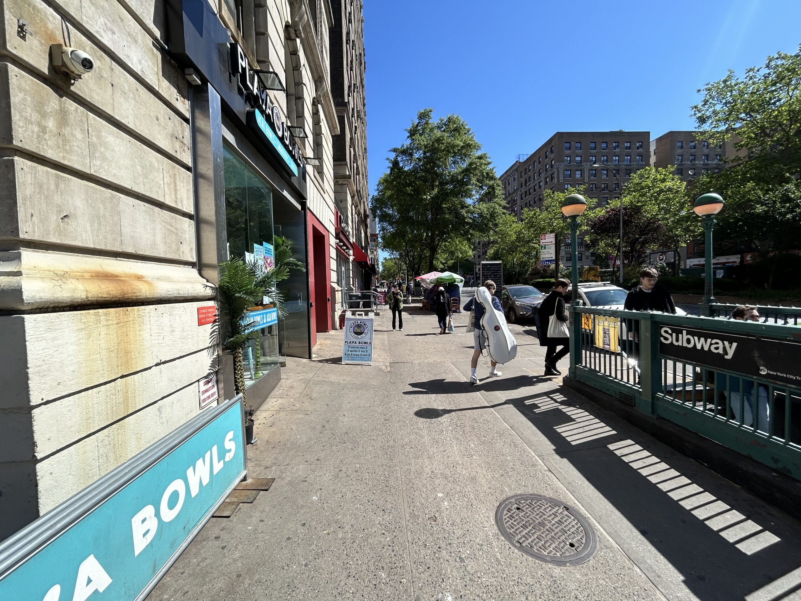 Along with the busy 110th Street intersection, the sidewalk shed covered a 1 train station and a fruit stand, as well as a Chipotle, Five Guys, and Playa Bowls, all of which are popular with nearby Columbia University students.