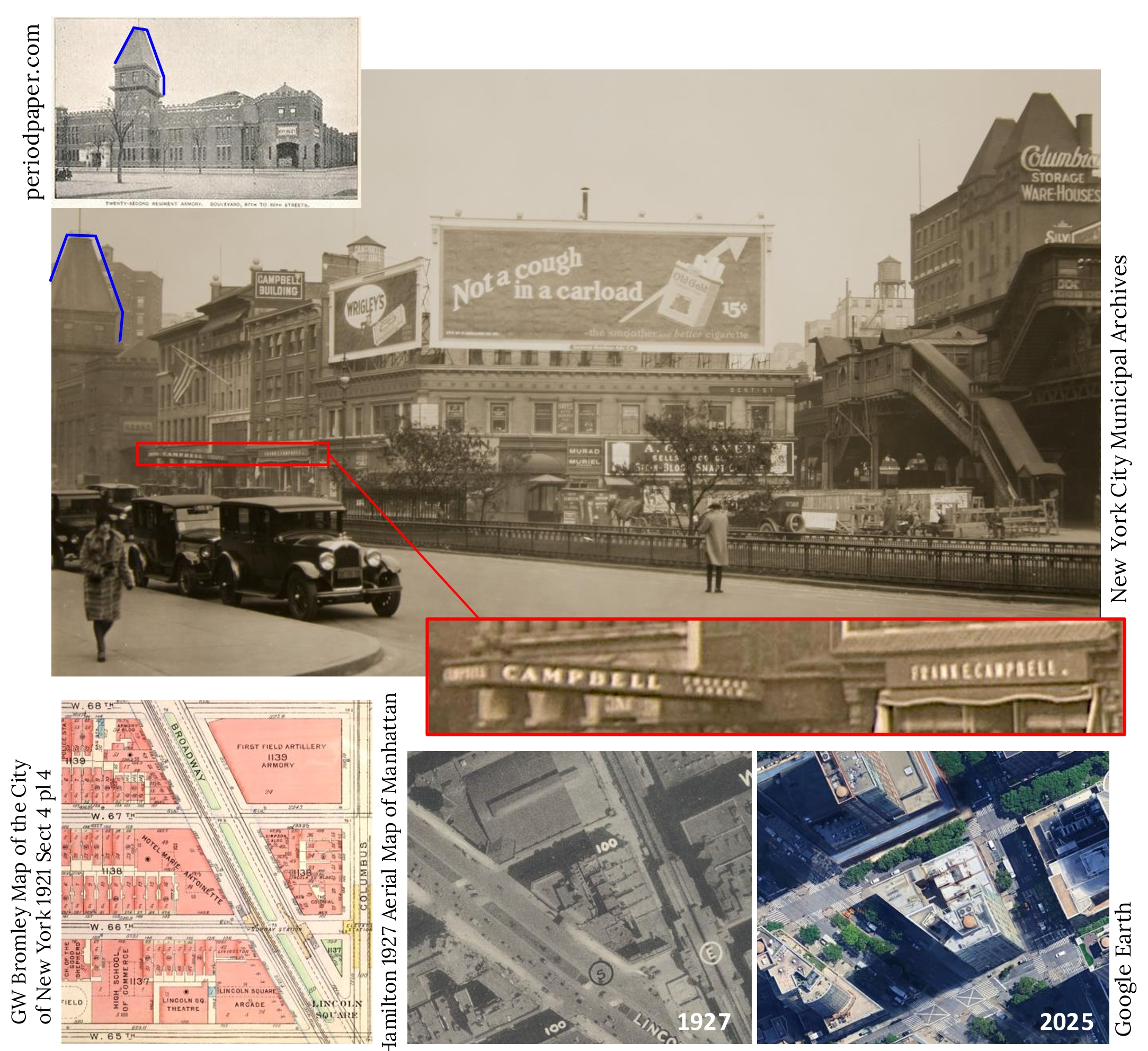 3. I found the image’s resolution too low to be able to tell the number of digits in the building number. How confident are you that it’s two? But I agree that if it is two digits, you’ve likely identified the block (range) … except that both Amsterdam and WEA begin at 59th Street, so might it have been an avenue-side apartment not far north from there and probably now long gone?