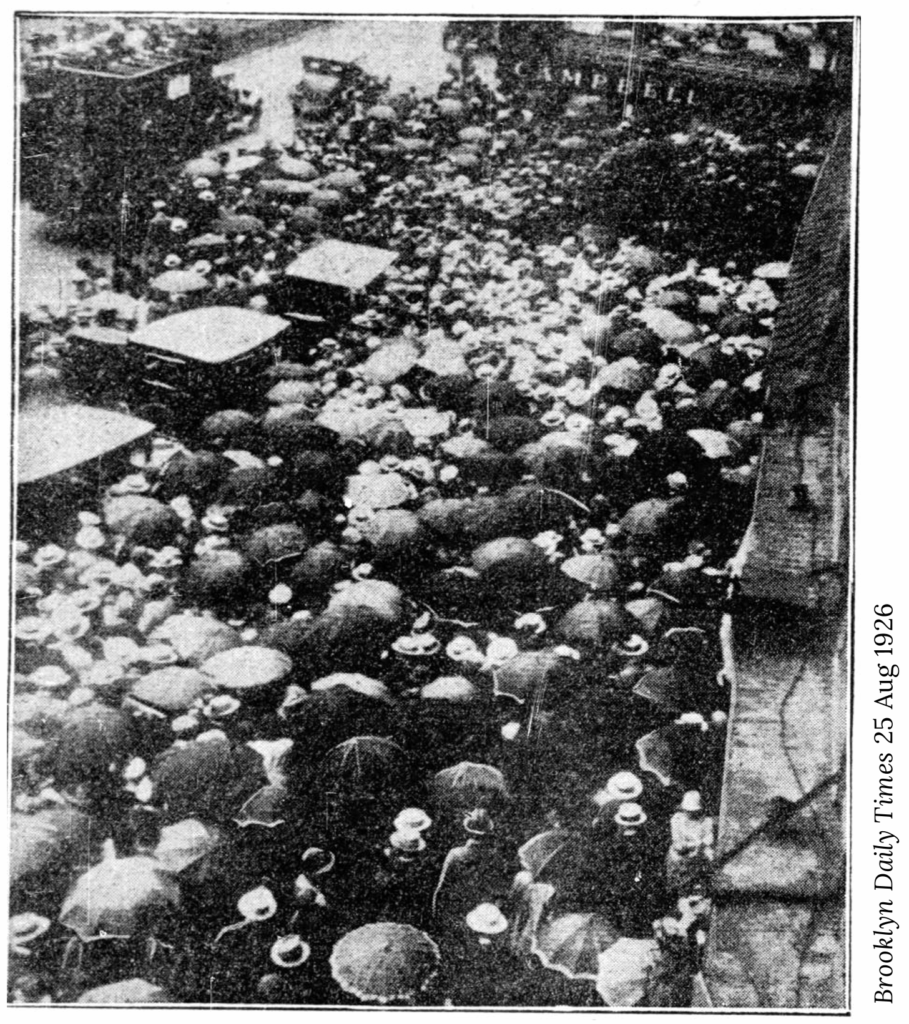 The rest of the story: The Frank E. Campbell funeral home on Madison Avenue on the Upper East Side is synonymous with funerals of the rich and famous–check out the Wikipedia list of celebrity funerals at Campbell’s. Staff at Frank Campbell’s “funeral church,” as he dubbed it, are now legendary for their discretion, but it wasn’t always so. Frank E. himself was the P.T. Barnum of funerals, innovating in a stultified industry and embracing publicity as a way of driving business. Campbell was so successful that he moved uptown in 1915 from his original location and built a large establishment at 1966 Broadway, between 66th and 67th streets. The apotheosis of Campbell’s career was the funeral of silent-film legend Rudolph Valentino in August 1926. Valentino died at the age of 31 of complications from appendicitis, lingering for several days while the nation waited anxiously. When Campbell opened the funeral home for public viewing of Valentino’s corpse, crowds essentially rioted in an effort to get in. Campbell secretly hired actors to pose as Italian fascists and guard the corpse, claiming they had been sent by Mussolini and boosting the drama another notch. When Valentino’s body was moved down Broadway to St. Malachy’s Church for a funeral service, an estimated 100,000 mourners and gawkers thronged around Campbell’s and lined the route to the church.