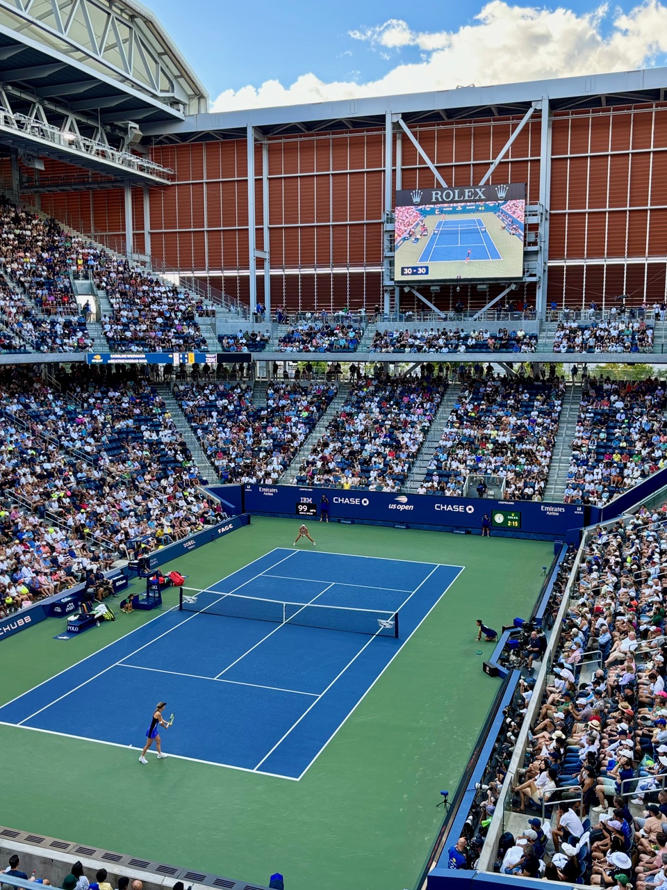 A lot has changed. I remember when tennis stars would practice on the Central Park tennis hard courts the week before the tournament – before they added more practice courts out at Flushing. Grounds passes were minimal prices – now $150. Good tickets were always corporate but prices have gone crazy – and so many empty corporate seats while tennis fans are up in the gods. I will be in an ESPN TV seat