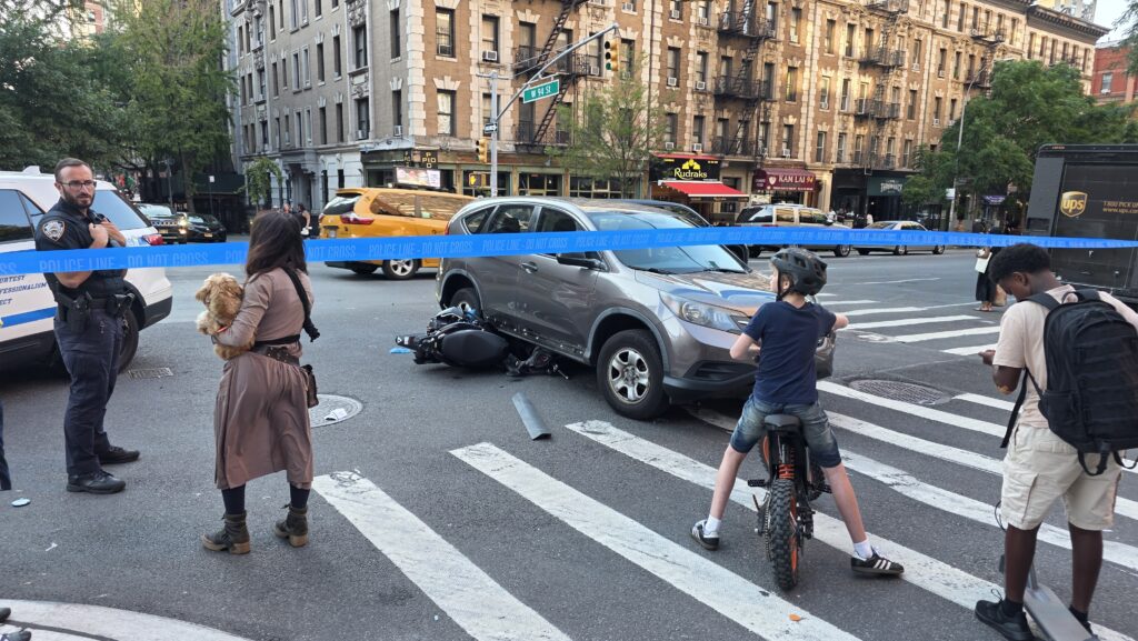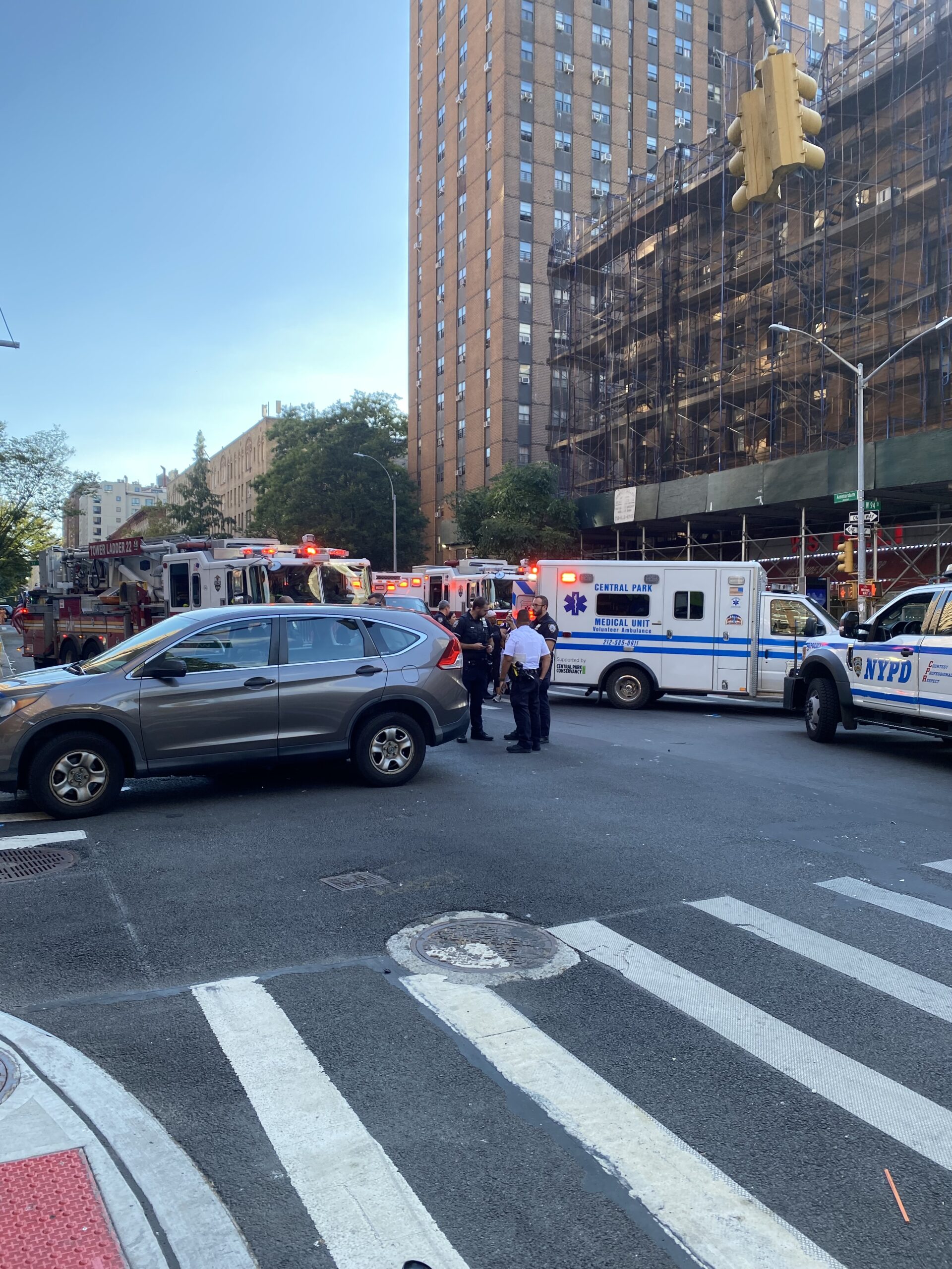 “Bad crash at Amsterdam Avenue,” Eric Levenson wrote to the Rag in an email. “There were about 5-6 police vehicles and ambulance on scene, and traffic on Amsterdam was rerouted.”