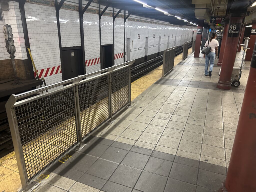 Protective edge gates were installed earlier this summer at the 96th Street 1, 2, and 3 station. As described by the MTA, the barriers are designed to prevent “intrusion” onto the tracks, which includes unauthorized entry, but also helps prevent people from falling or possibly being pushed into the train’s path.