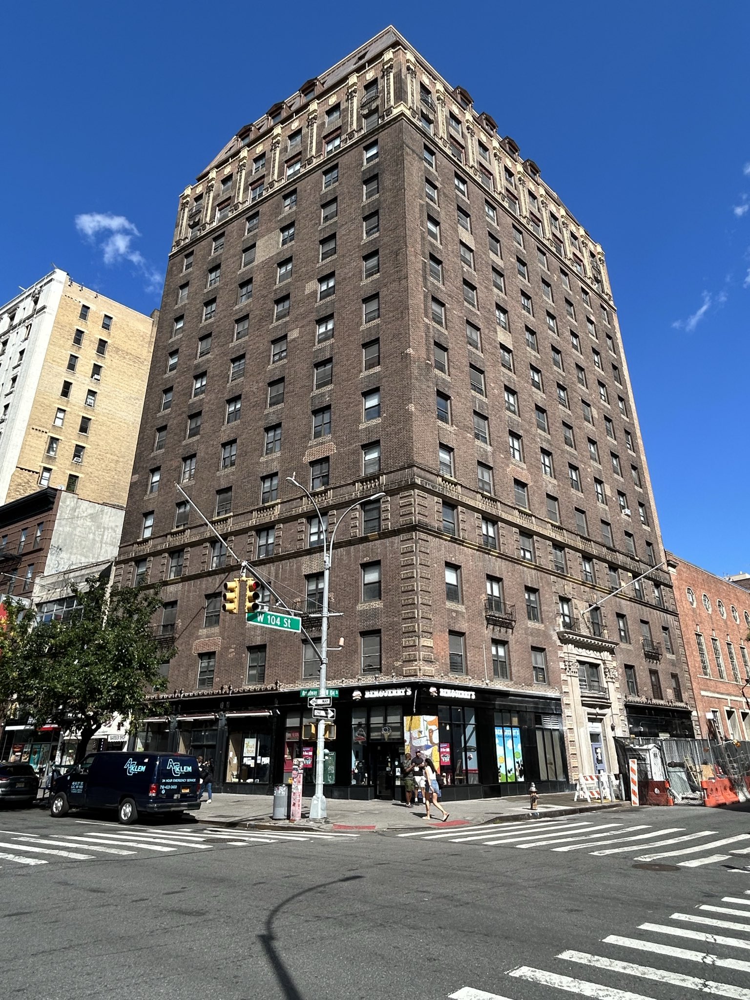 The era of the sidewalk shed and scaffolding at the corner of the east side of 104th Street and Broadway has come to an end.