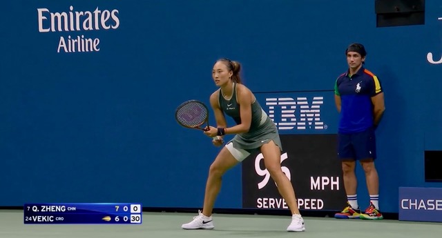 Fundamentally, the ball crew’s job is to keep track of all the balls in play, continuously “send” (i.e., roll) them back to the server’s end of the court, and “service” the players throughout each match. Jason Cust, who lives on Central Park West, has worked the Open for more than a decade, rising to become one of the most senior members of the crew. He’s stood behind Roger Federer in Arthur Ashe Stadium, run down the rare errant serve by Novak Djokovic, and shaded players like Iga Świątek from the blazing sun during changeovers. He once brought Venus Williams the cup of hot coffee she requested. Many bananas have been distributed to players during changeovers.