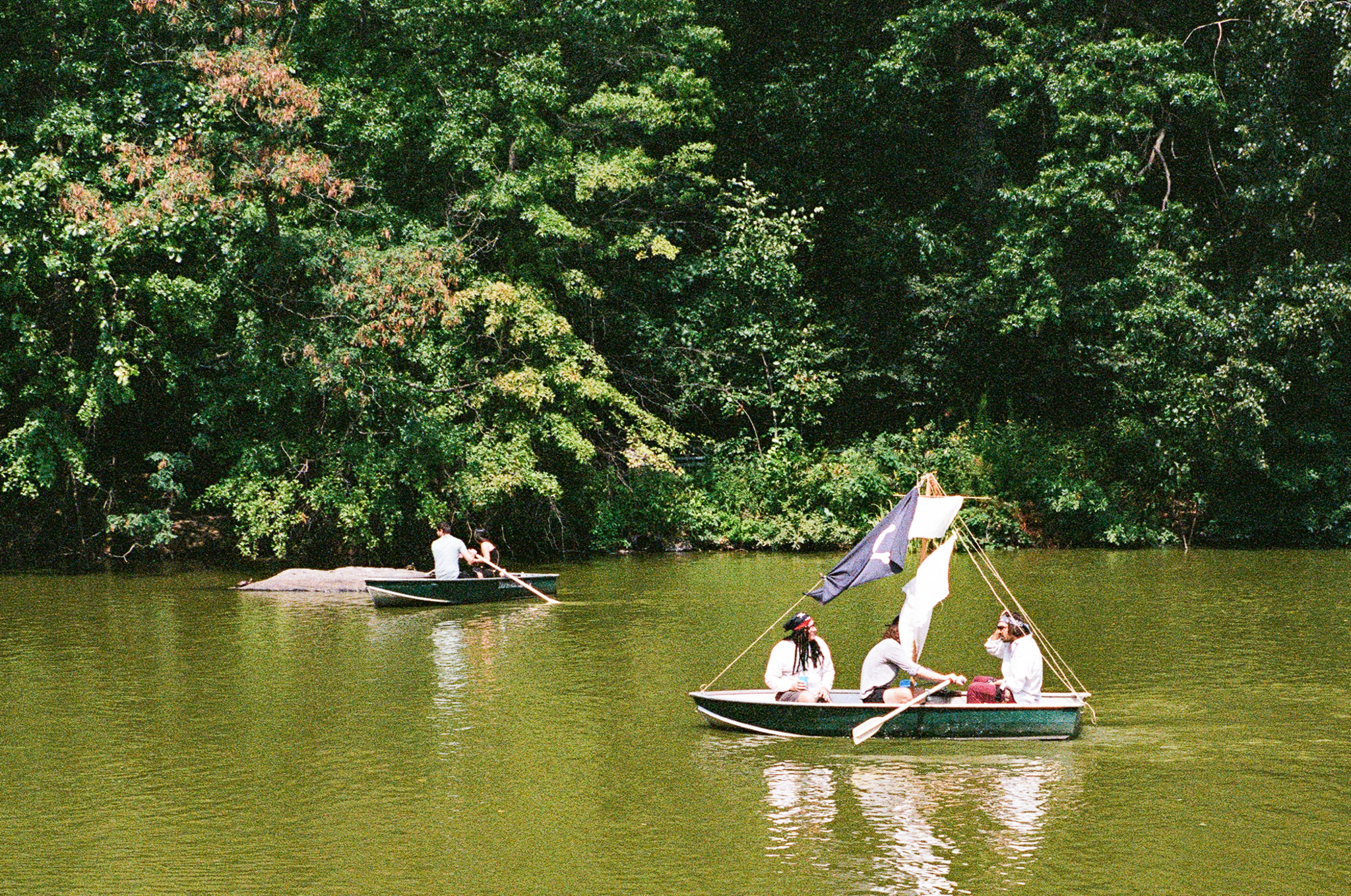 Avast me hearties! There’s a pirate rowboat in Central Park!