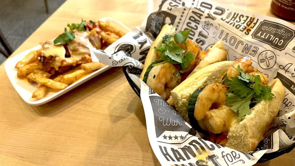 The Dish: Shrimp Bahn Mi ($20) and Kimchi Fries ($9)