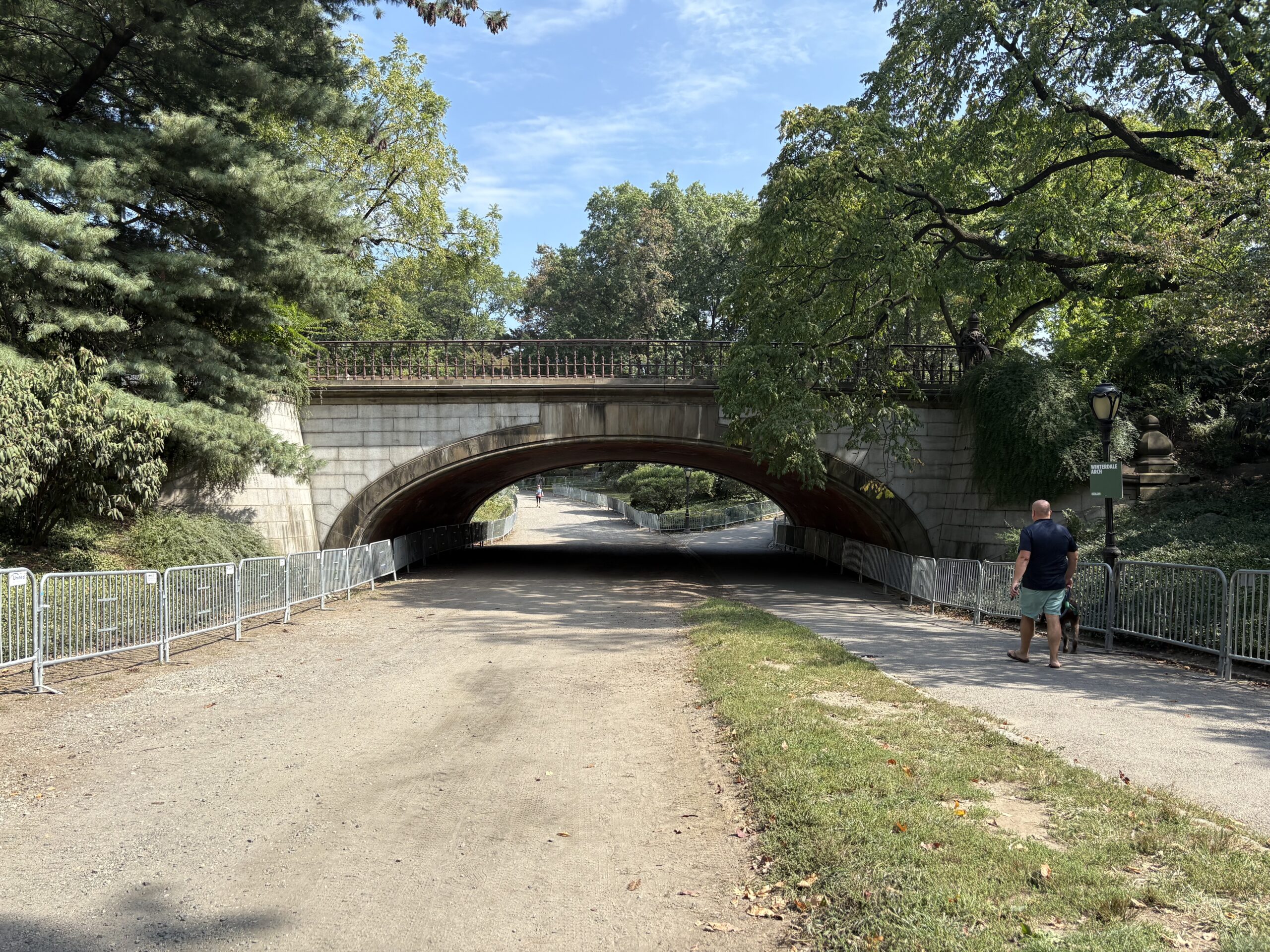 One morning, I had an epiphany. There is a fork in the path from the 81st entrance of the park leading to the drive. Bravely, I decided to take the lefthand path instead of the right, which was my habit, and, lo and behold, I came upon a tunnel called the Winterdale Arch that passes underneath the drive. Now, not only have I said goodbye to anxious, angry, dangerous morning crossings, but the arch has a wonderful echo.