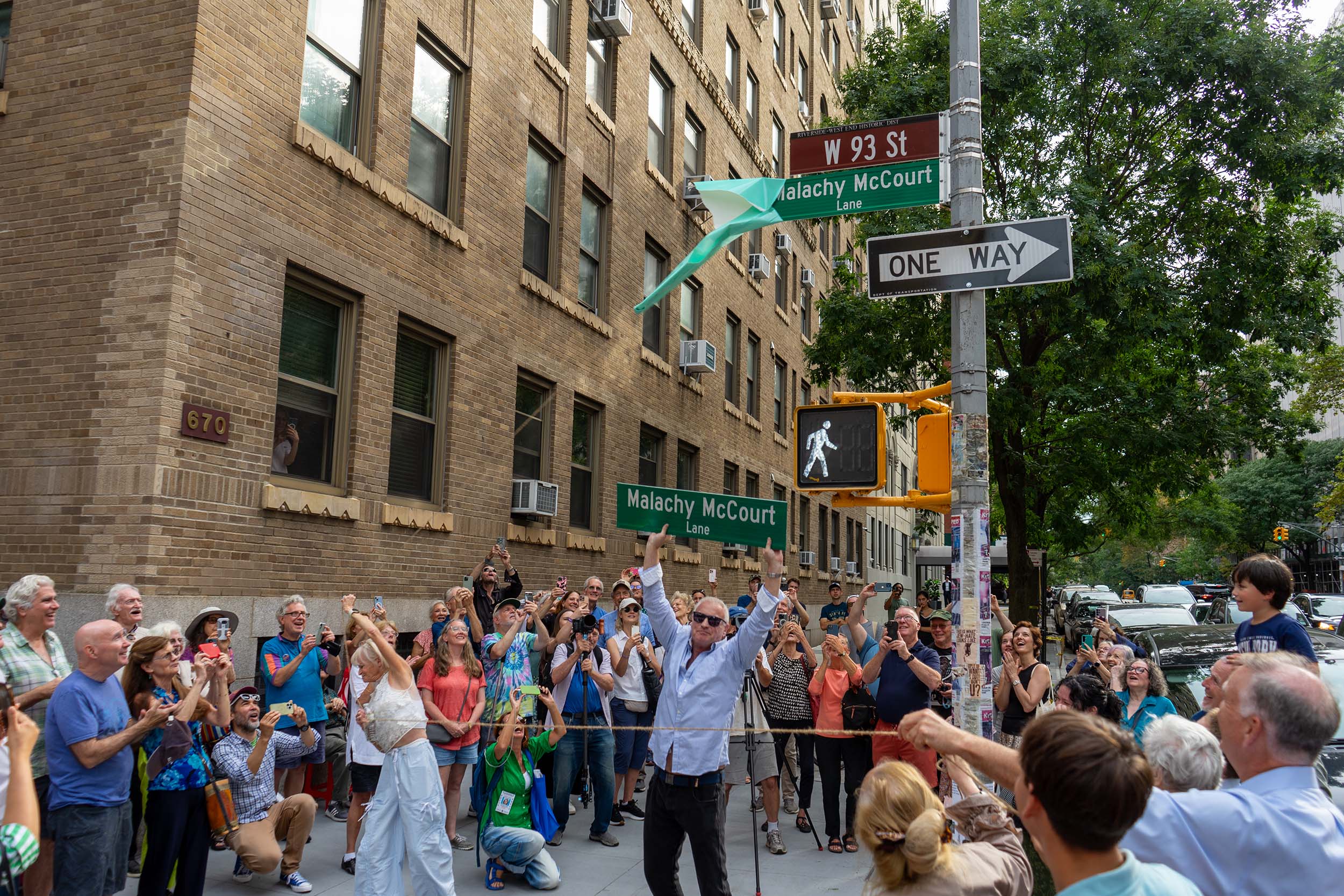 Hundreds of friends, family, and neighbors of the late writer and actor Malachy McCourt gathered on Saturday to celebrate the official renaming of a section of West 93rd Street as Malachy McCourt Lane, an homage to the legacy of a giant in the Irish American community who called the Upper West Side home for many years.