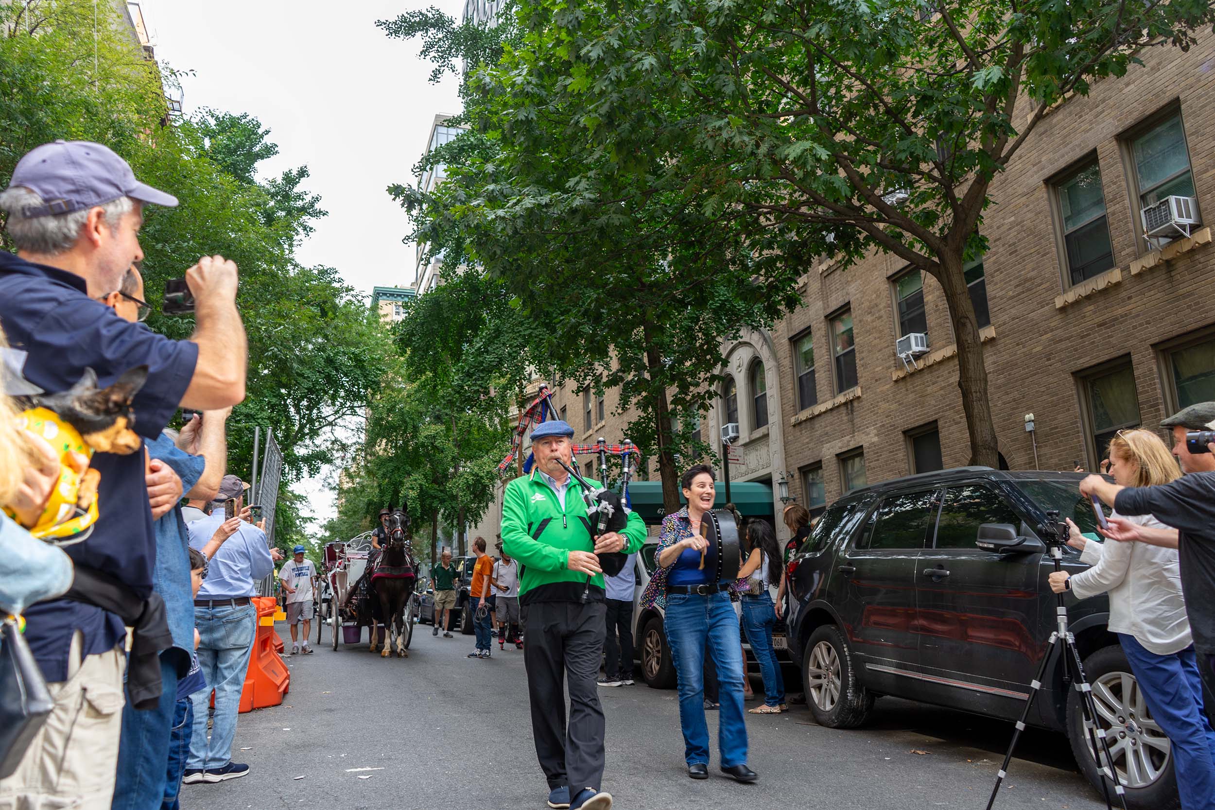 Hundreds of spectators turned up to the street renaming ceremony, including local representatives from Community Board 7, Assemblymember Linda Rosenthal and City Councilmember Gale Brewer. The arrival of a horse drawn carriage and a bagpipe player marching down West 93rd Street marked the start of the ceremony. A poster of a smiling McCourt looked out at the crowd from a lectern set up for speakers.