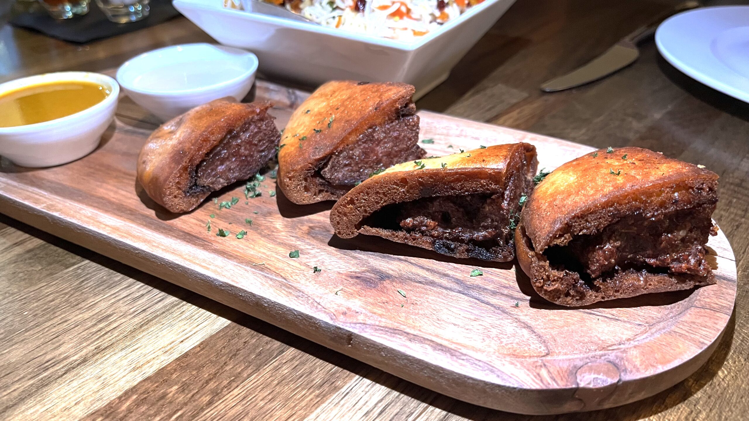 Things got more interesting was when I started dipping the arayes in the amba. You want flavor, that’s flavor! Sour, fruity, with a good kick of heat, the amba was a delightful enhancer to the arayes, pairing beautifully with the charred pita and gamey lamb. Pop-like and delicious, I could just drink gallons of this potion.