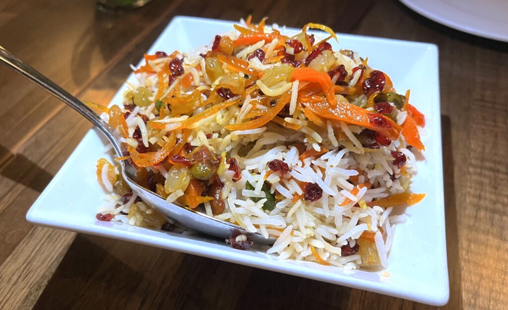 With no tahdig to choose from, I paired my arayes with jeweled rice, in which expertly steamed, airy basmati is mixed with caramelized onions, carrots and sweets including barberries, candied orange peel and golden raisin, and finished with almonds and pistachios. While it was beautiful to look at and the rice was, indeed, perfectly executed, the dish lacked in fragrance somehow, as well as structure, with the ingredients not blending together fully. Or maybe it was just me and my disappointment at not being able to delight in the tahdig I was craving. I hope they add one to the menu — hint, hint!