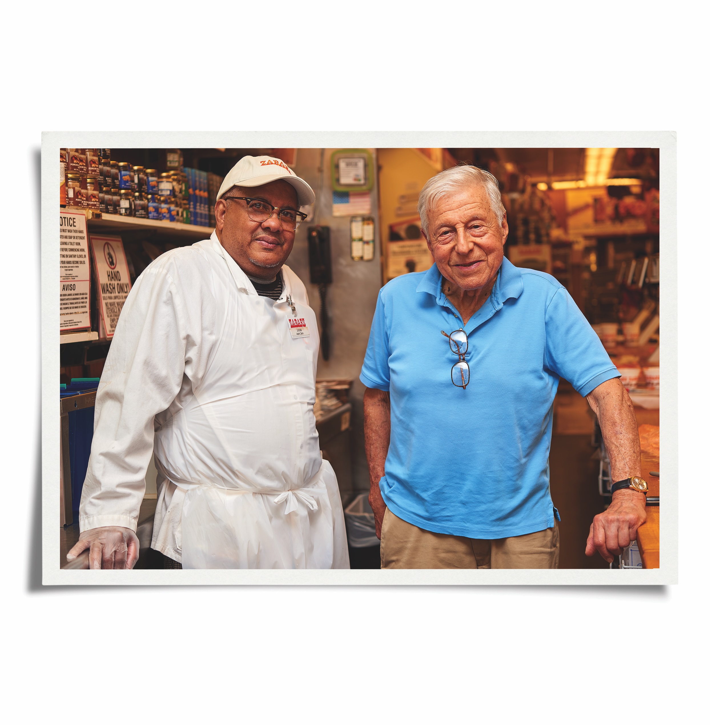 It’s 8:55 a.m. on Wednesday morning, and the place is already humming. A customer is mid sentence with a deli guy, and the maintenance man from the air conditioning company barks, “Who called for AC service?” Next, an older couple from the neighborhood chimes in, “Who can help me get our deli platters out to the cab?” Cold cases are being restocked with cole slaw and horseradish, bearing the bright orange Zabar’s logo.
