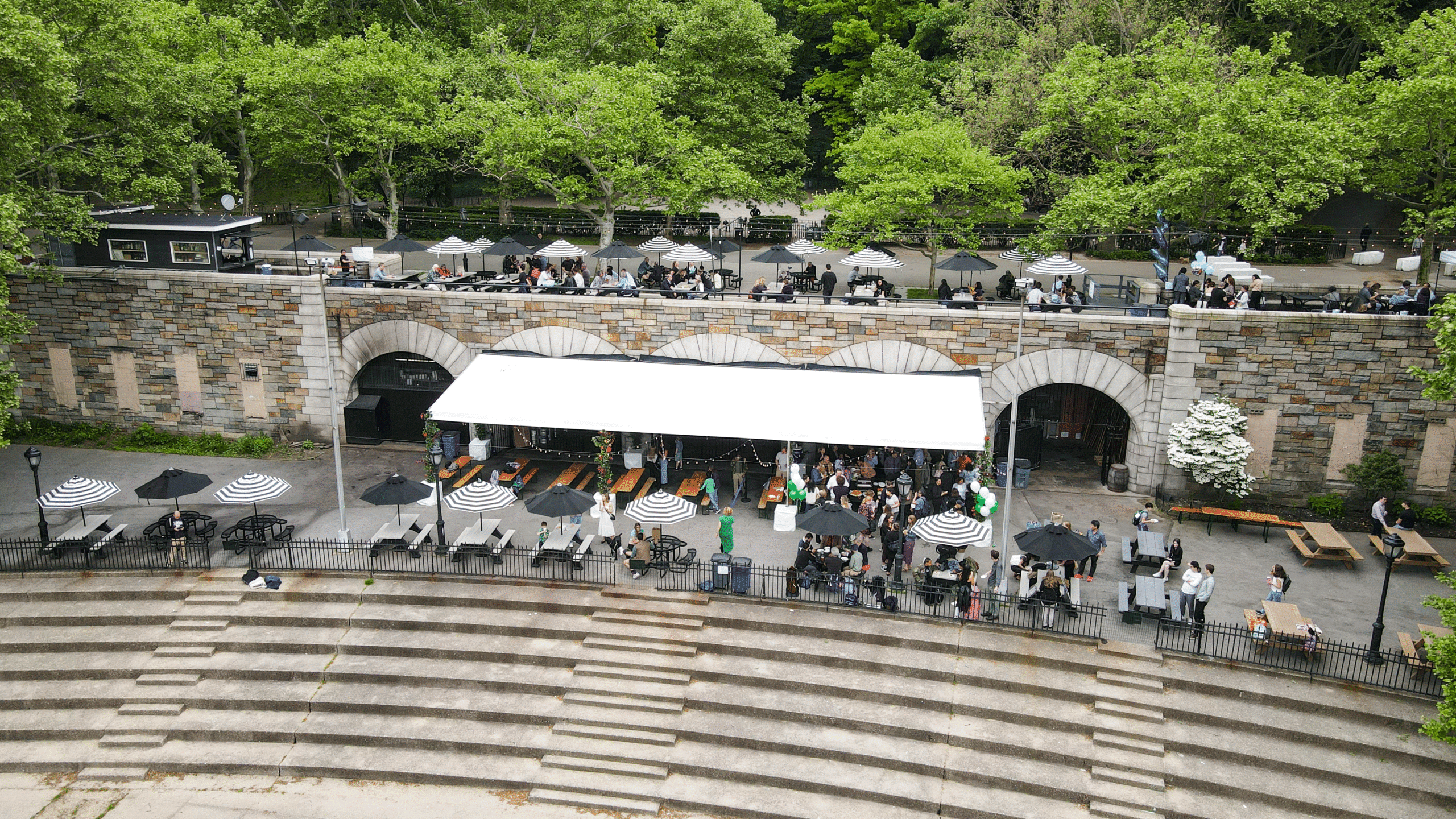 Ellington in the Park, the outdoor cafe in Riverside Park and West 105th Street, will close for the season on November 2nd, a representative confirmed to West Side Rag, and will reopen in the spring of 2026. Known for its great sunset views overlooking the Hudson River, Ellington has a menu that includes pizza, tacos, sandwiches, quesadillas, falafel, and salads. The cafe, which is on two levels, is open April through early November.