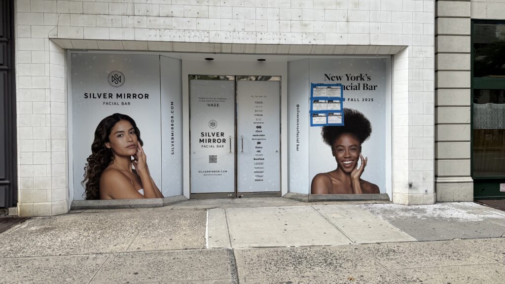 Silver Mirror Facial Bar is opening on Friday, November 7th, at 2305 Broadway (between West 83rd and West 84th streets.) This will be the fifth location in NYC for the facial bar, which also has locations in Miami and in Washington D.C. Services range from 30-minute facials to 50-minute facials, with a new “Premier Contour Facial” which lasts 90 minutes, a representative wrote to West Side Rag. The space will contain eight facial beds. Hours of operation will be Monday through Friday from 8 a.m. to 9 p.m., Saturdays from 9 a.m. to 7 p.m., and Sundays from 10 a.m. to 6 p.m. On opening weekend (November 7th through 9th), Silver Mirror will partner with local West Side businesses Sugared+Bronzed, and Solidcore, to offer various promotions and raffle prizes. “Swag bags will be given to customers purchasing memberships and there will be sample giveaways for all in attendance,” the representative wrote. The space was most recently a pop-up bookstore called Epilogue.