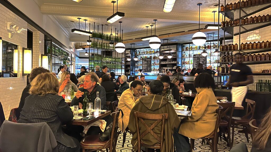 We love The Smith – the ambrosial Smith Burger as well as almost all of its other offerings – but we only eat there when it’s warm enough to sit outdoors; sadly, the deafening noise indoors (at all their locations, thanks in large measure to the tiles and other hard surfaces) makes conversation impossible. Unfortunately, our next Smith Burger will now have to wait until next spring.