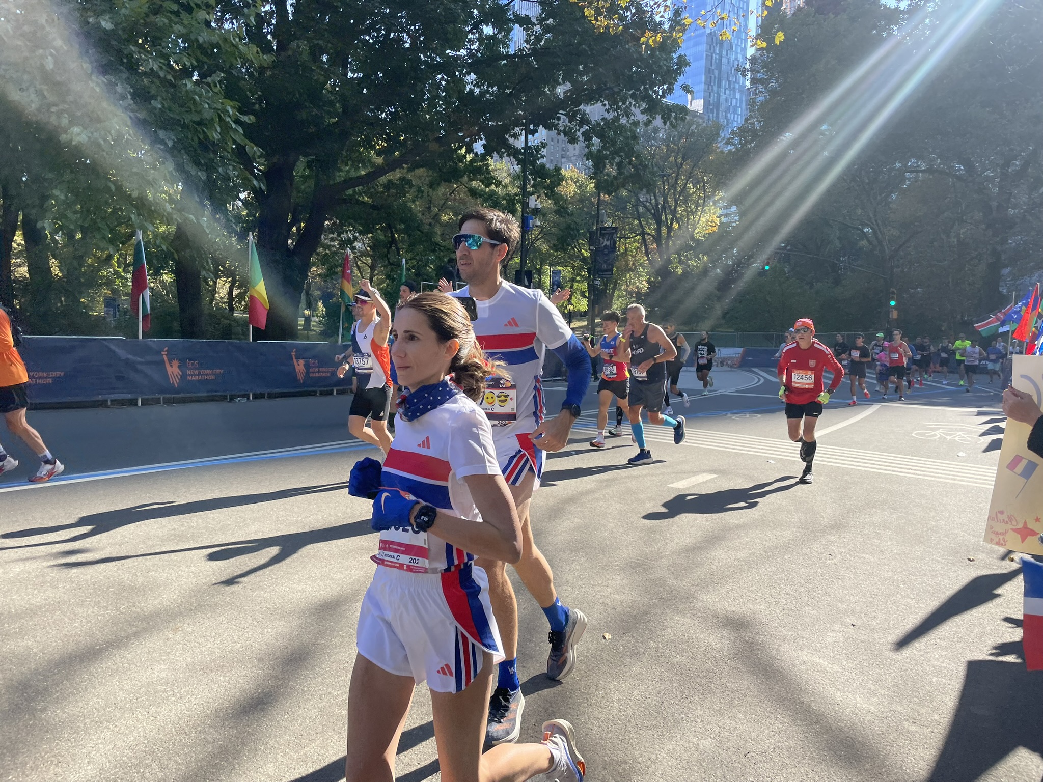 Noah, another Upper West Sider, had given up on Sunday brunch plans after realizing the closed streets and crowded subways would be too difficult to navigate. He brought his young daughter, Chloe, to the marathon instead. She sat on his shoulders and cheered as the first runners crossed the 26-mile mark. When two visitors from England tried to puzzle out the origin of a flag in the crowd – one of dozens lining the race’s last stretch, Noah volunteered: “I think it’s Fiji.”