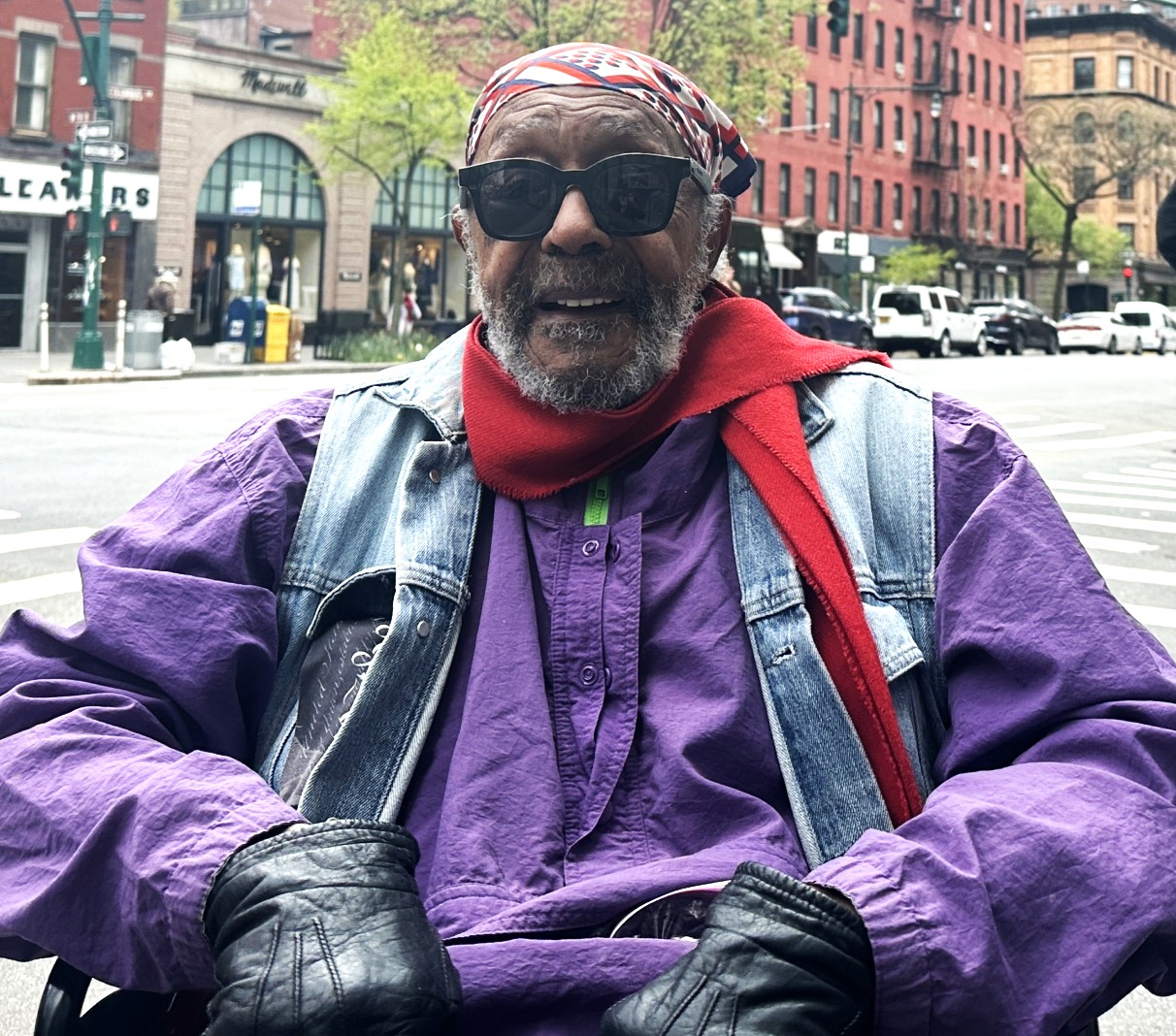 Theo moved from Hell’s Kitchen to Hargrave House on West 71st Street in 2004 and almost immediately became a well-known fixture. His favorite spot in the neighborhood was in front of Muffins Café on Columbus Avenue, where he was usually decked out in bright colors, with a wool cap and a huge smile. He made sure to reach out to the local children on their way to and from school, telling them we were “depending on them” and that they mattered, with a warm smile. He greeted everyone else with an inspiring, jaunty “Keep love alive!”
