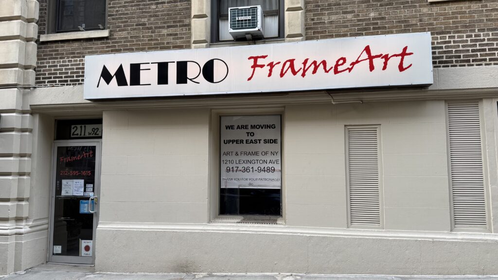Metro Frame Art, a custom framing shop at 211 West 92nd Street (between Broadway and Amsterdam Avenue), closed its Upper West Side location on December 1st, consolidating with Art & Frame of New York on the Upper East Side. Both frame shops are owned by Bo Okuyan. Metro Frame Art had been in the Upper West Side space since 1990, Okuyan told West Side Rag on a phone call. He will continue to sell custom frames for artwork and photographs at the Upper East Side store, which offers the same framing services as Metro Frame Art. He hopes to reopen a store on the Upper West Side at a future date, but at the moment nothing is set. (Thanks to Jeff for the tip.)