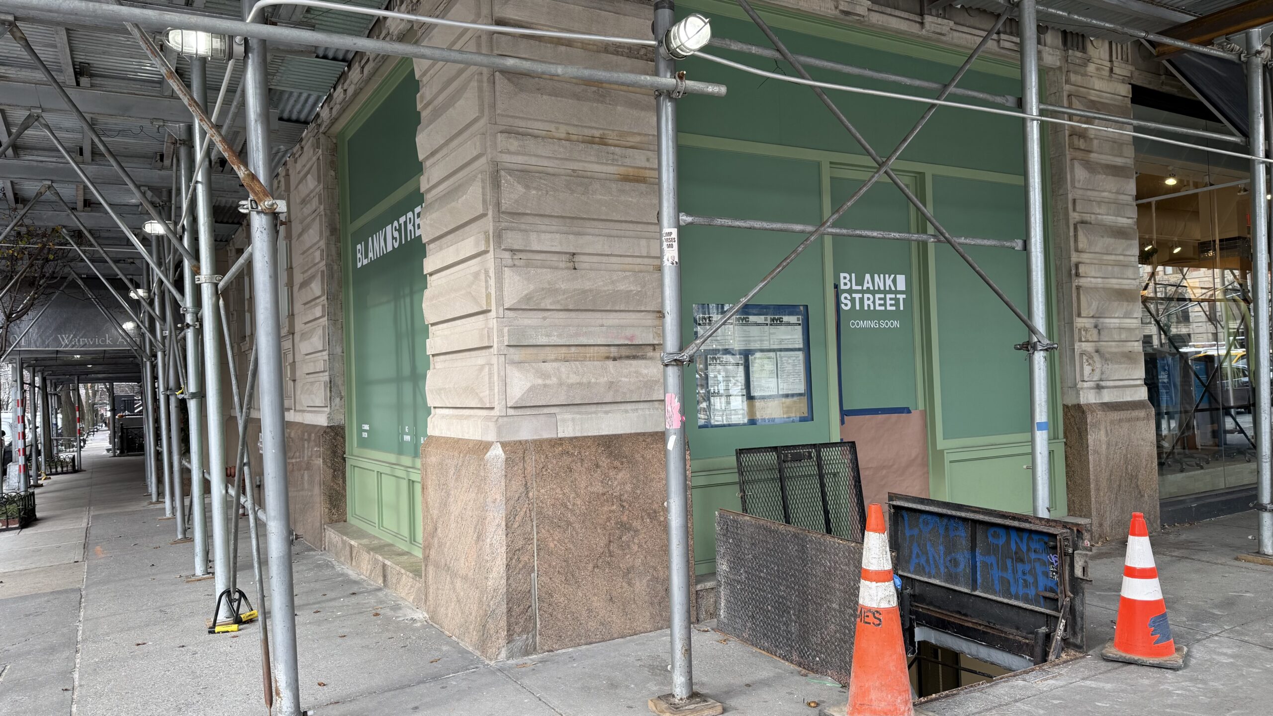 Blank Street Coffee has signage up at 418 Columbus Avenue (at West 80th Street), with plans to open in the first half of 2026, a representative confirmed to West Side Rag. This will be the fourth Upper West Side location for the coffee chain; others are on Broadway at West 86th Street, Broadway at West 91st Street, and Columbus Avenue at West 69th Street. Blank Street Coffee was founded in Brooklyn in 2020, and has rapidly expanded with multiple locations in NYC, Boston, Washington D.C., England, and Scotland. Andy’s Deli which closed in 2022 was previously in the space.