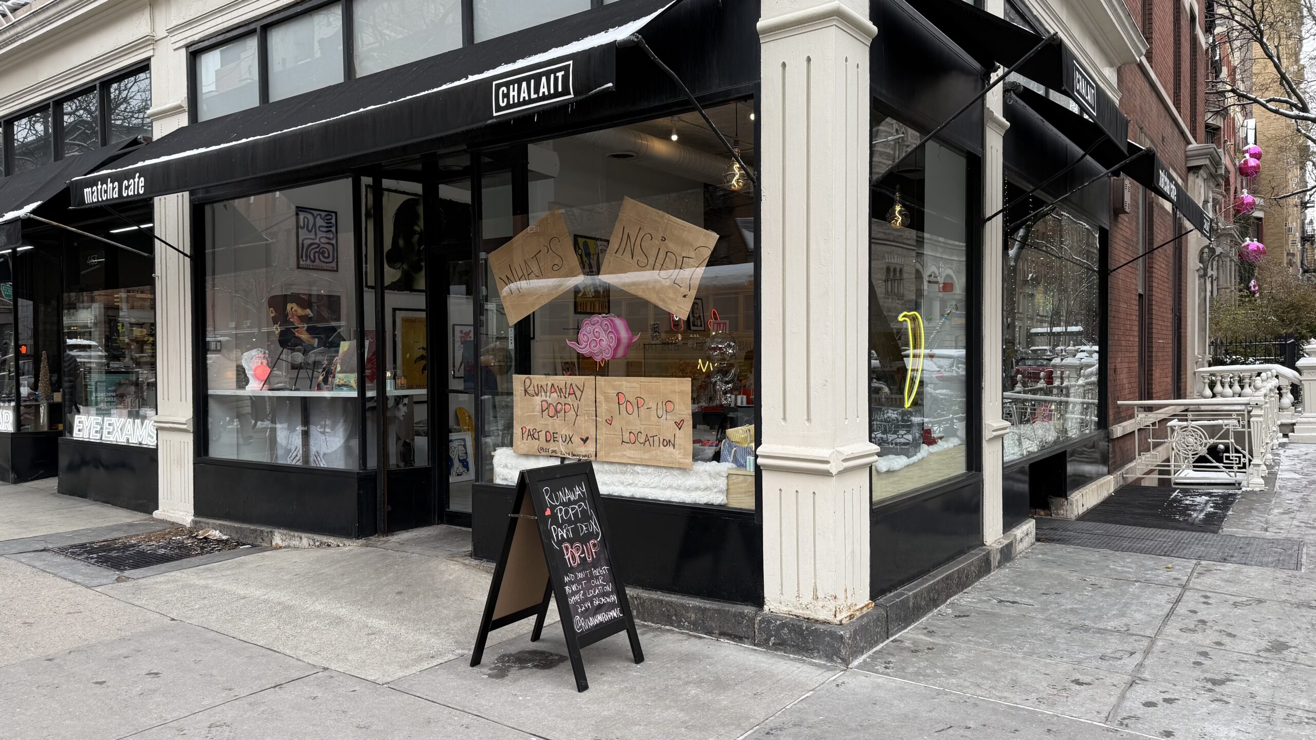 Runaway Poppy, a gift shop, opened a holiday pop-up on December 12th at 461 Amsterdam Avenue (at West 82nd Street). The pop-up will be there until December 27th. Runaway Poppy sells artwork, ceramic bowls and mugs, photographic prints, jewelry, bags, greeting cards, and games. The shop has a permanent location at 2244 Broadway (between West 80th and West 81st streets.). “We have a few items unique to our pop-up that we didn’t have room to display in our Broadway location,” owner Cara Milling wrote to the Rag. “This includes new art, new lighting that features collaborations with the Andy Warhol and Keith Haring Foundations, and a new collection of fun pottery from the United Kingdom.” The store is named after Milling’s grandfather “Poppy” whom she and her cousins spent many childhood summers with. Chalait, the matcha cafe which closed on November 28th, was previously in the space. (Thanks to Ben and Maggie for the tip.)