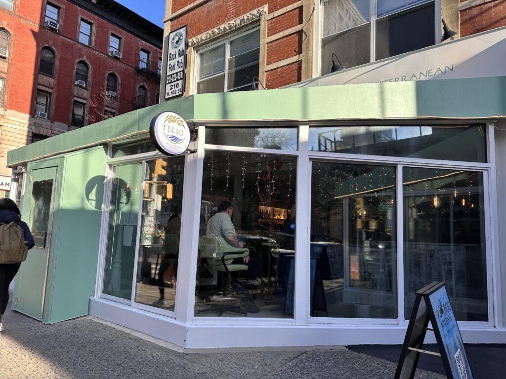 Telio’s, the Mediterranean restaurant that was formerly called Telio Taverna, officially reopened on December 4th at 2672 Broadway (at West 102nd Street), following a “soft” opening in November. It is open daily for lunch and dinner from 11:30 a.m. until 9 p.m. Telio’s closed its location at 2481 Broadway (between West 92nd and West 93rd Street), in December 2022 due to high rent. Owner Yianni Berbeis subsequently made an arrangement with Good Enough to Eat’s owner Jeremy Wladis to share space. The menu at the new Telio’s features some of its previous menu items (moussaka, branzino. salmon, pasta, gyros, and kabobs), and is similar to Korali, which Berbeis owns on the Upper East Side. Abigail’s, the So-Cal inspired restaurant which closed in March, was previously in the space. (Thanks to Phil and Gena for the tip.)