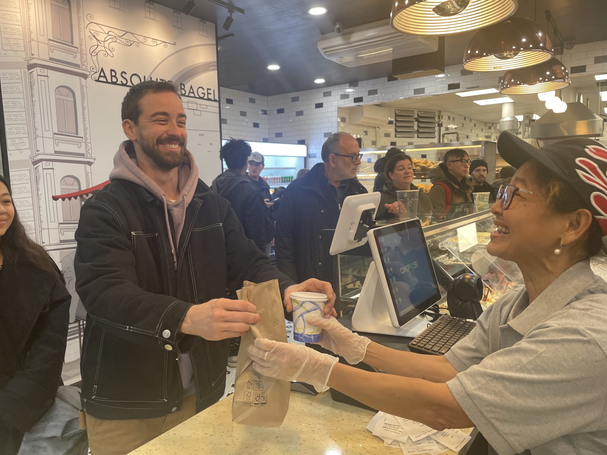 “We’re sooo back,” said local Dylan Pager after biting into his sesame bagel with lox spread. “We were so sad when it closed. I have an Absolute Bagel hat. I’ll be back tomorrow and Wednesday for sure.”