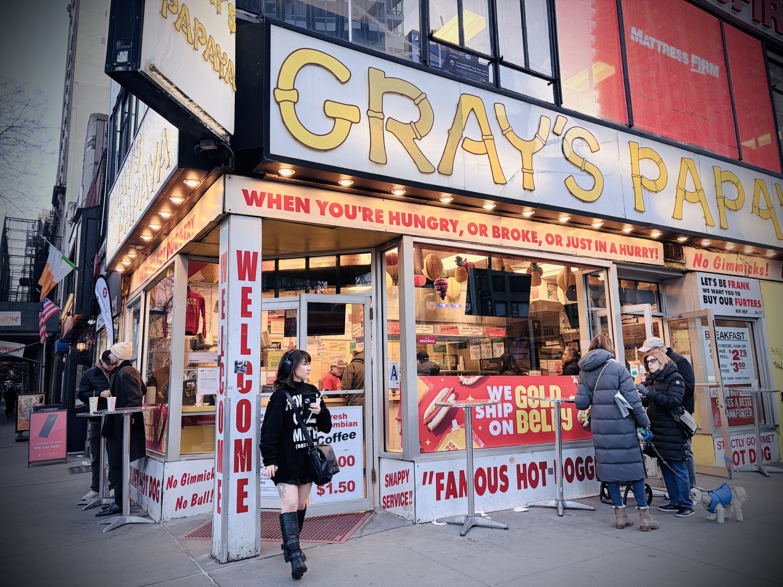 But then I took a breath and stepped outside. And sure enough, in a single day, I saw an unhoused Upper West Sider building a shelter out of four discarded Christmas trees in Central Park. I saw a couple making out in front of Gray’s Papaya (that smell is seductive). And I saw a woman losing it, trying to make it past the perpetually crowd-clogged takeout window at Parm on Columbus. She had every reason to—no polite “excuse me” will ever get you through the hungry, the excited, and the delivery workers with their helmet-covered ears.