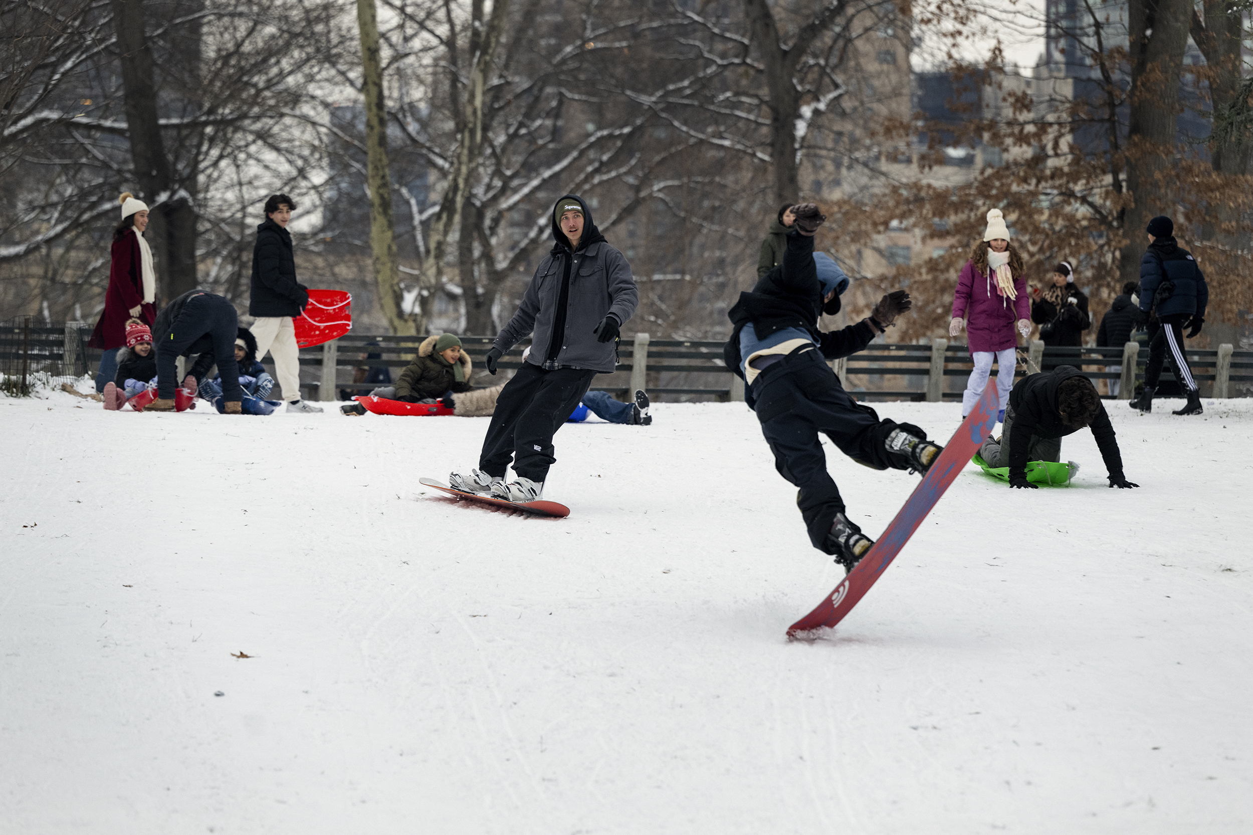 “They [snowboarders] were getting questions all day,” said a delighted Lee, who recently opened a Signal store in Soho. “They were riding in between the sledders … sledding kids [were] riding in between them. It was like a community day.”