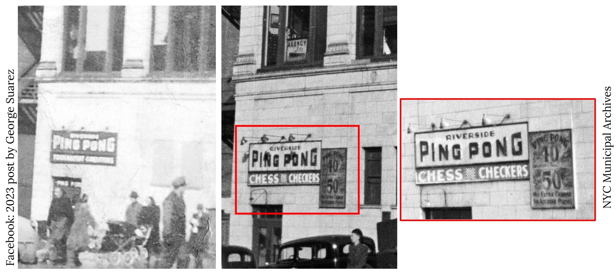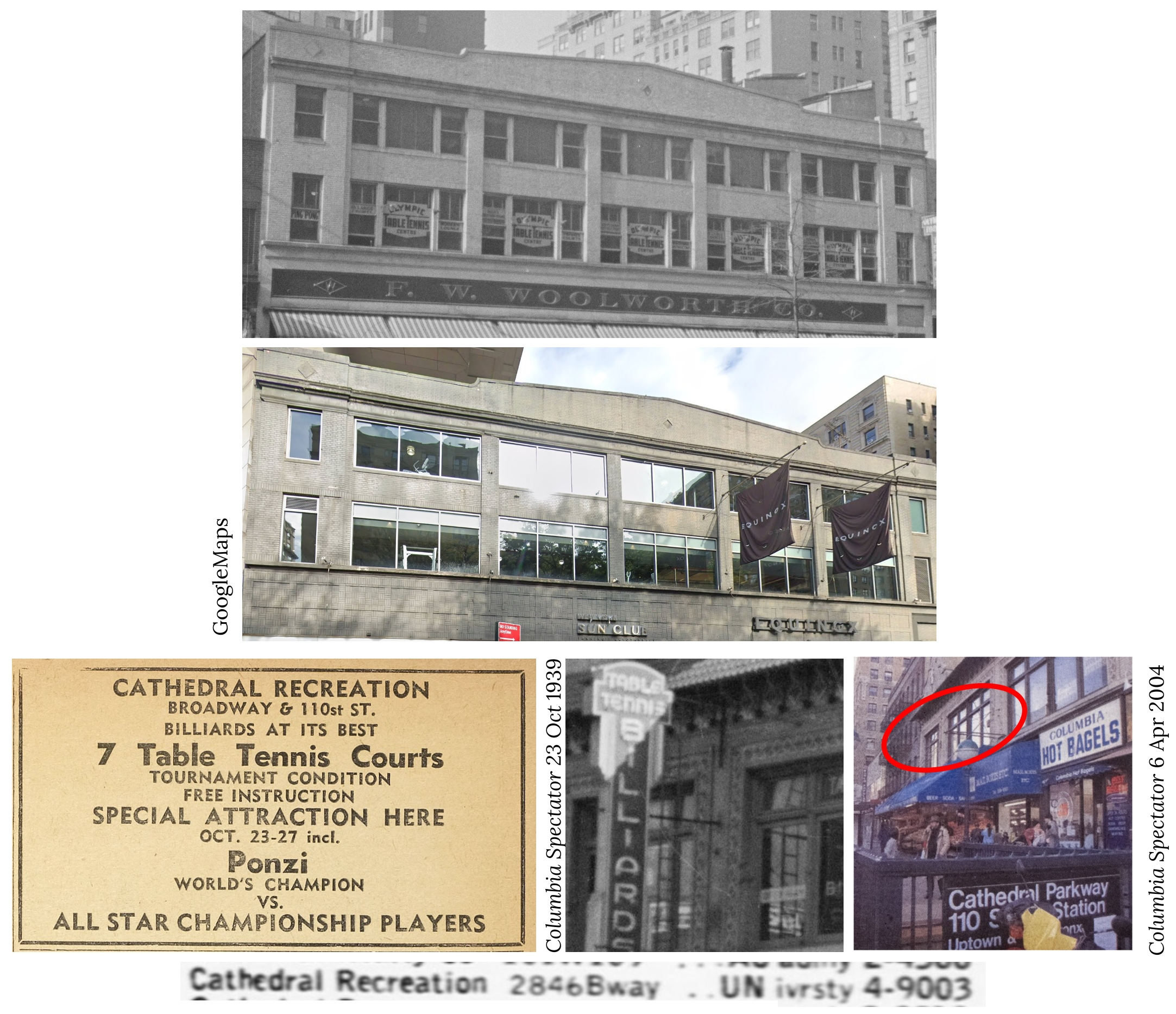 Clues: Ping pong centers required a lot of floor space and since they were not particularly high-earning enterprises, they were usually upstairs or in the basement of undistinguished buildings. So it’s understandable if you didn’t recognize any of these buildings; none was famous and only one survives today.