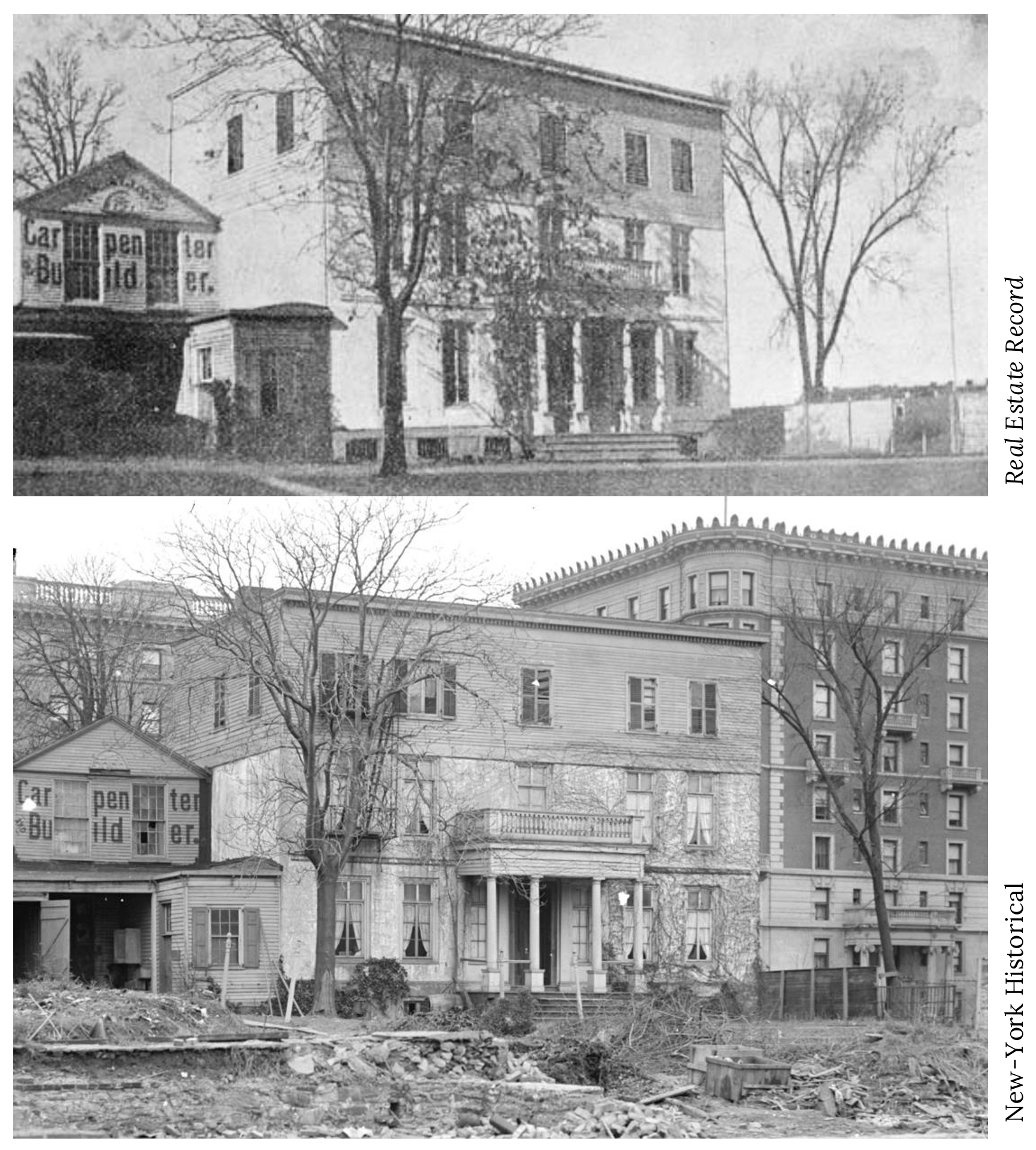 Is it the building that was formerly on the block that the Apthorp now occupies? I hadn’t seen the top photo but I’ve seen the bottom one — the Van Den Heuvel mansion.