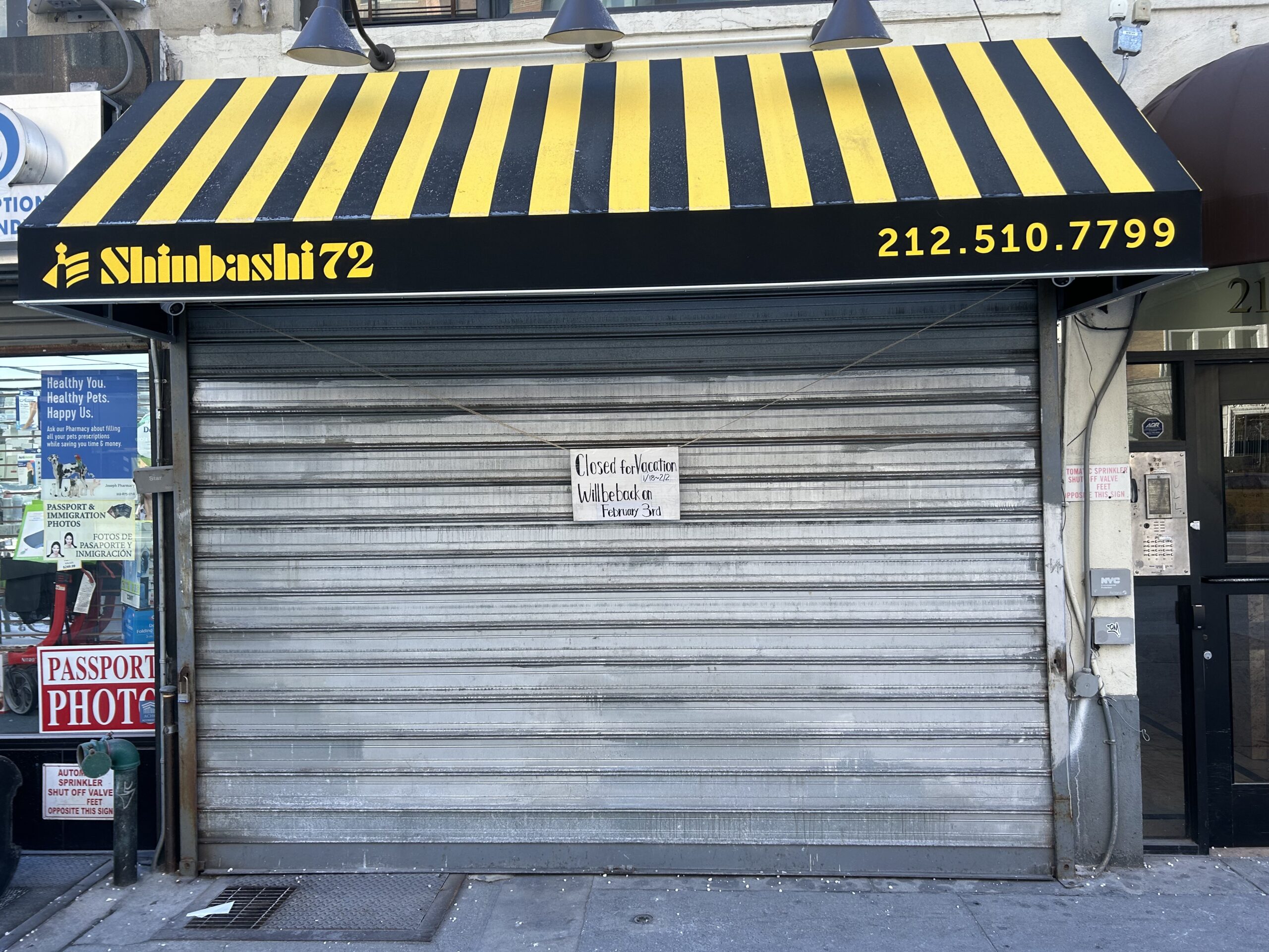 Shinbashi 72, a Japanese grocery store and market at 218 West 72nd Street ( between Columbus and Amsterdam Avenues), is temporarily closed while the owners are on vacation. It will reopen with normal business hours on Tuesday February 3rd, a representative wrote to the Rag. ( Thanks to Emily for the tip.)
