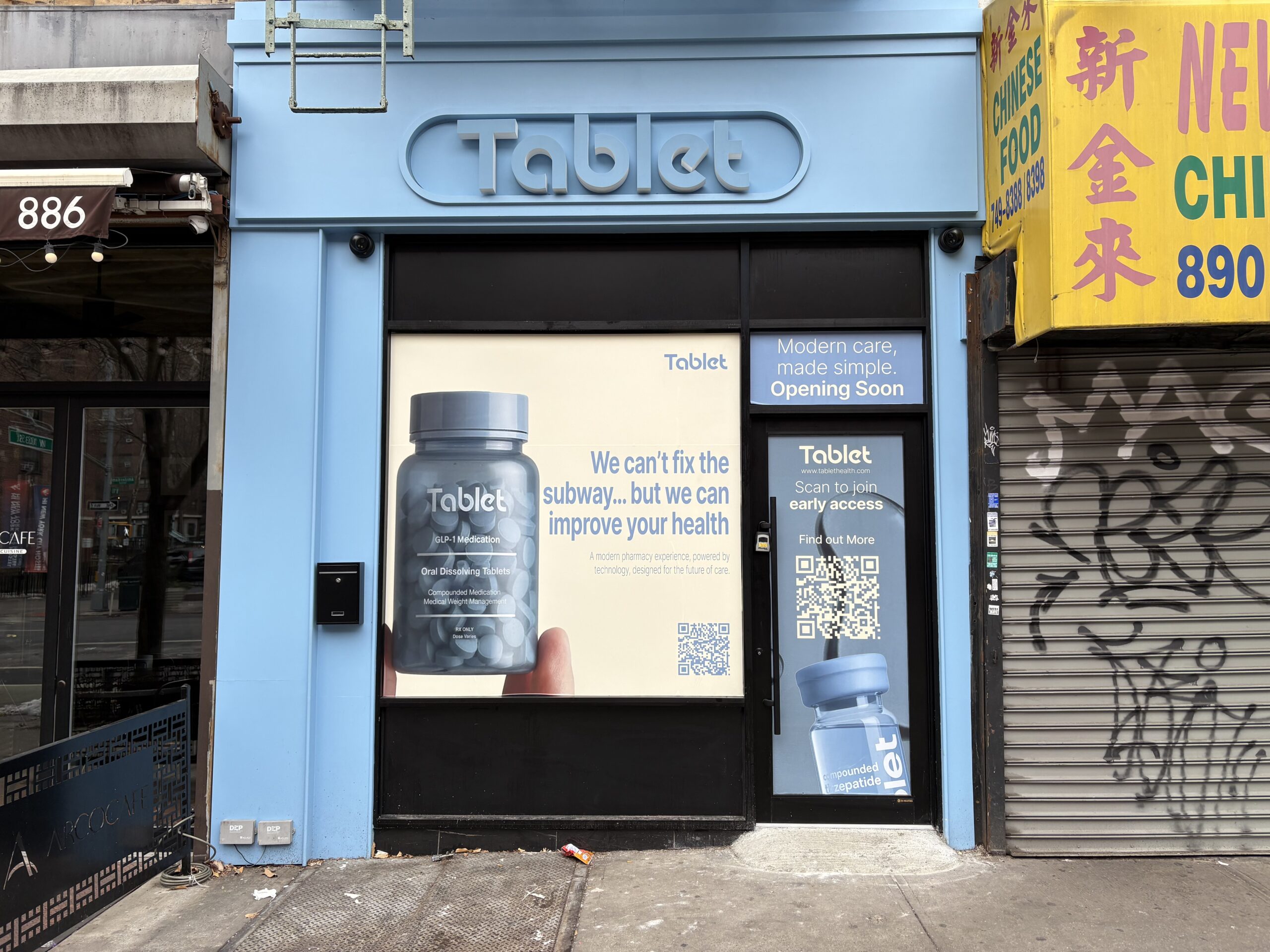 Tablet, a “modern pharmacy” is opening its flagship location soon at 888 Amsterdam Avenue (between West 103rd and West 104th streets). They are completing the credentialing process and expect to open in the spring, the company’s CEO, Oren Y. wrote to West Side Rag in an email. Tablet offers telehealth services along with an in-person pharmacy experience. “We are building Tablet to be a fast, service-driven, neighborhood pharmacy focused on making healthcare easier and more human, whether patients visit us on the Upper West Side, or manage their needs digitally,” Oren wrote. Tablet’s expected hours of operation are: 9 a.m. to 6 p.m., Monday through Friday; closed Saturday; 10 a.m. to 2 p.m., Sunday. Tablet has plans to open three locations in Queens and one in Oceanside, Long Island. A bike shop was previously in the space. (Thanks to Gary for the photo and the tip.)