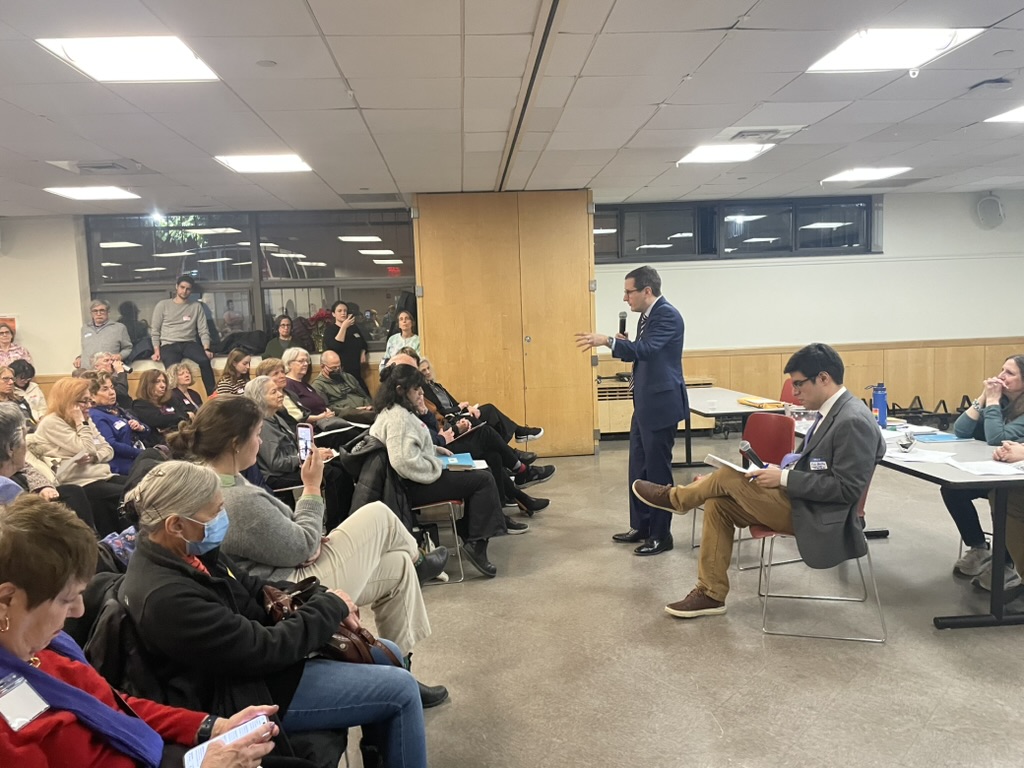State Assemblymembers Micah Lasher and Alex Bores bookended the forum; Lasher, who already has landed endorsements from prominent Upper West Side politicians and is expected to be endorsed by Nadler, was the first on stage.