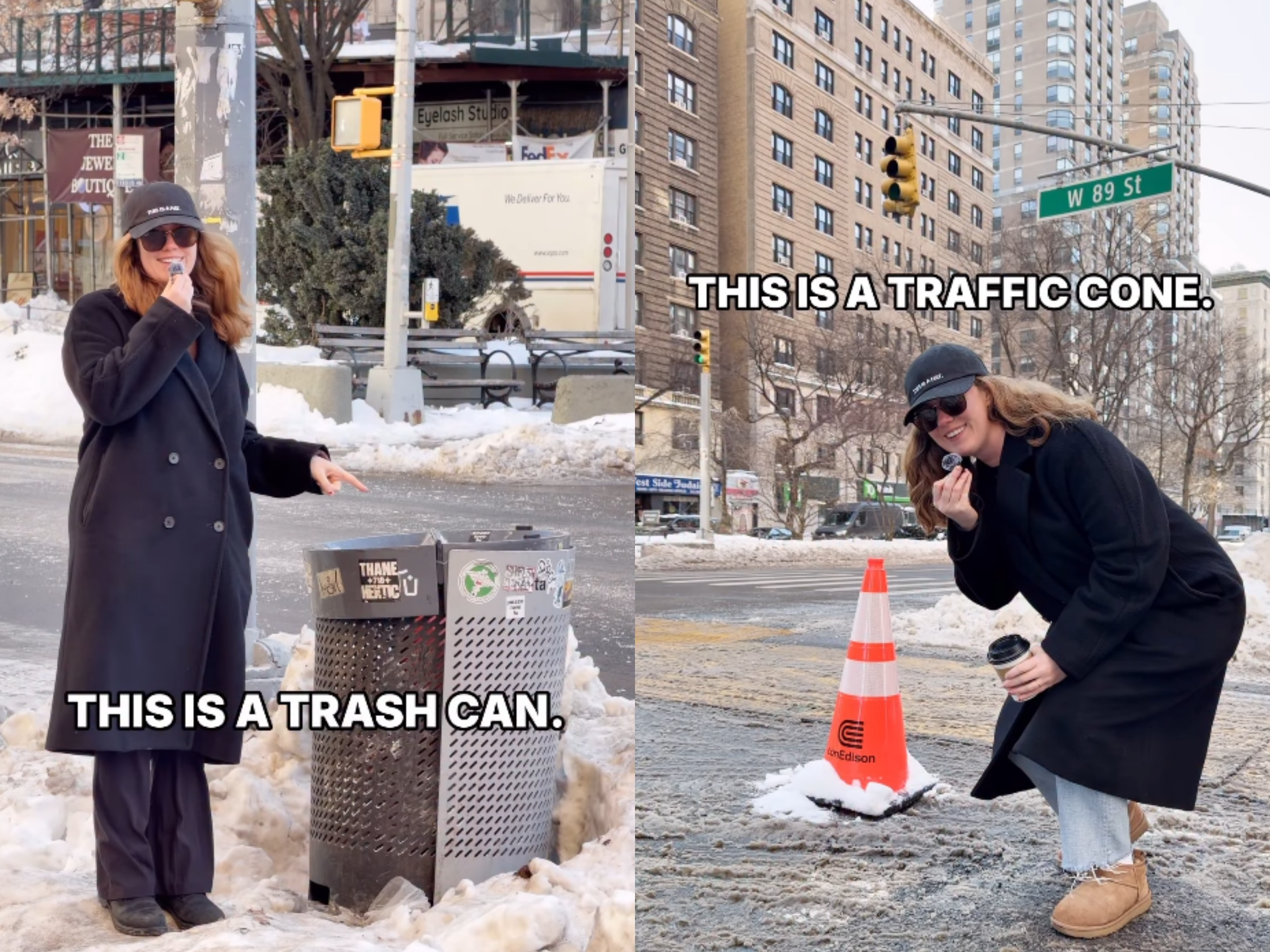In the opening shot of one of her recent short videos, Upper West Sider Caroline O’Leary crouches next to an orange traffic cone on the corner of West 89th Street and Broadway.