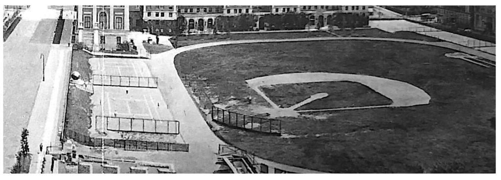 Baseball Diamond at Columbia University. That’s 116th Street on the left (The portion now taken as part of the Columbia U. Plaza) 114th Street is beyond Right Field.