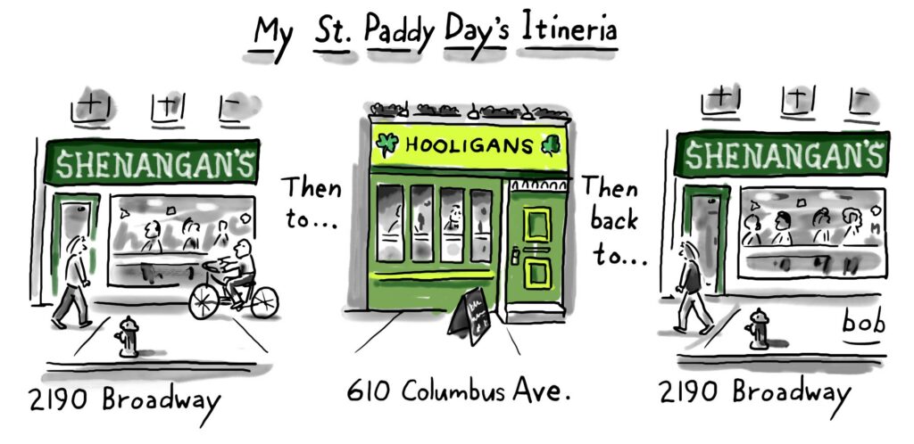 About the cartoonist: Bob Eckstein is a writer, illustrator, author, and contributor of cartoons to The New Yorker and West Side Rag. Check out his popular newsletter, The Bob, and Read the Rag’s Q & A with him — HERE.