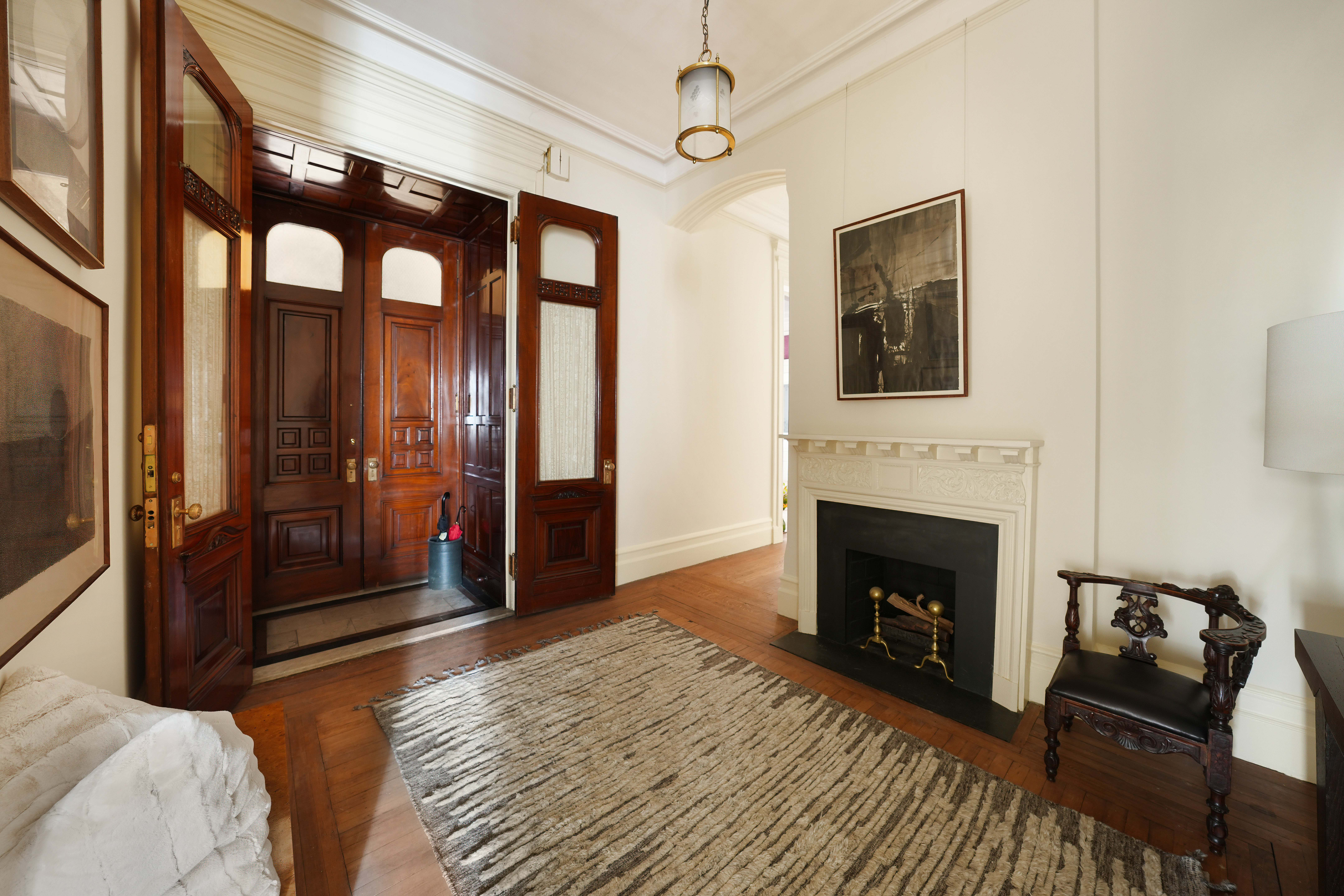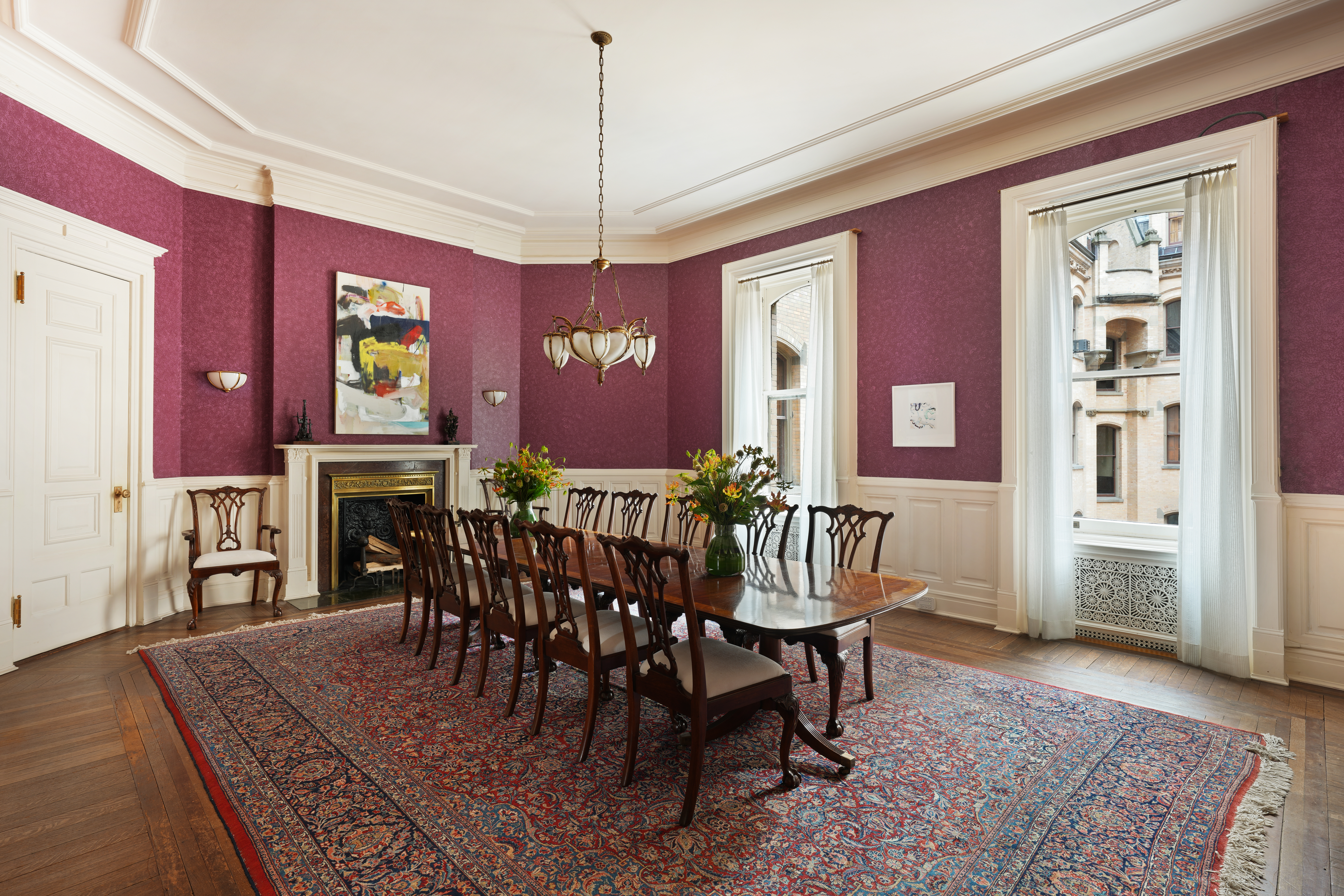 A listing has gone live for a fifth-floor apartment with four to five bedrooms, four bathrooms, and five fireplaces. The apartment is 4,500 square feet, making it one of the largest in the building, and has 12-and-a-half foot ceilings, and 10-foot mahogany doors.