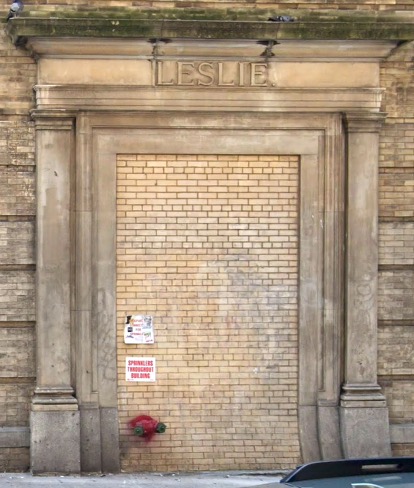 The answer to the question about the word “LESLIE.” over the door is that the upper floor of the two-story building that faces Broadway between 82nd and 83rd was home to a meeting space called Leslie Hall for more than 30 years, from 1896 until the late 1920s.